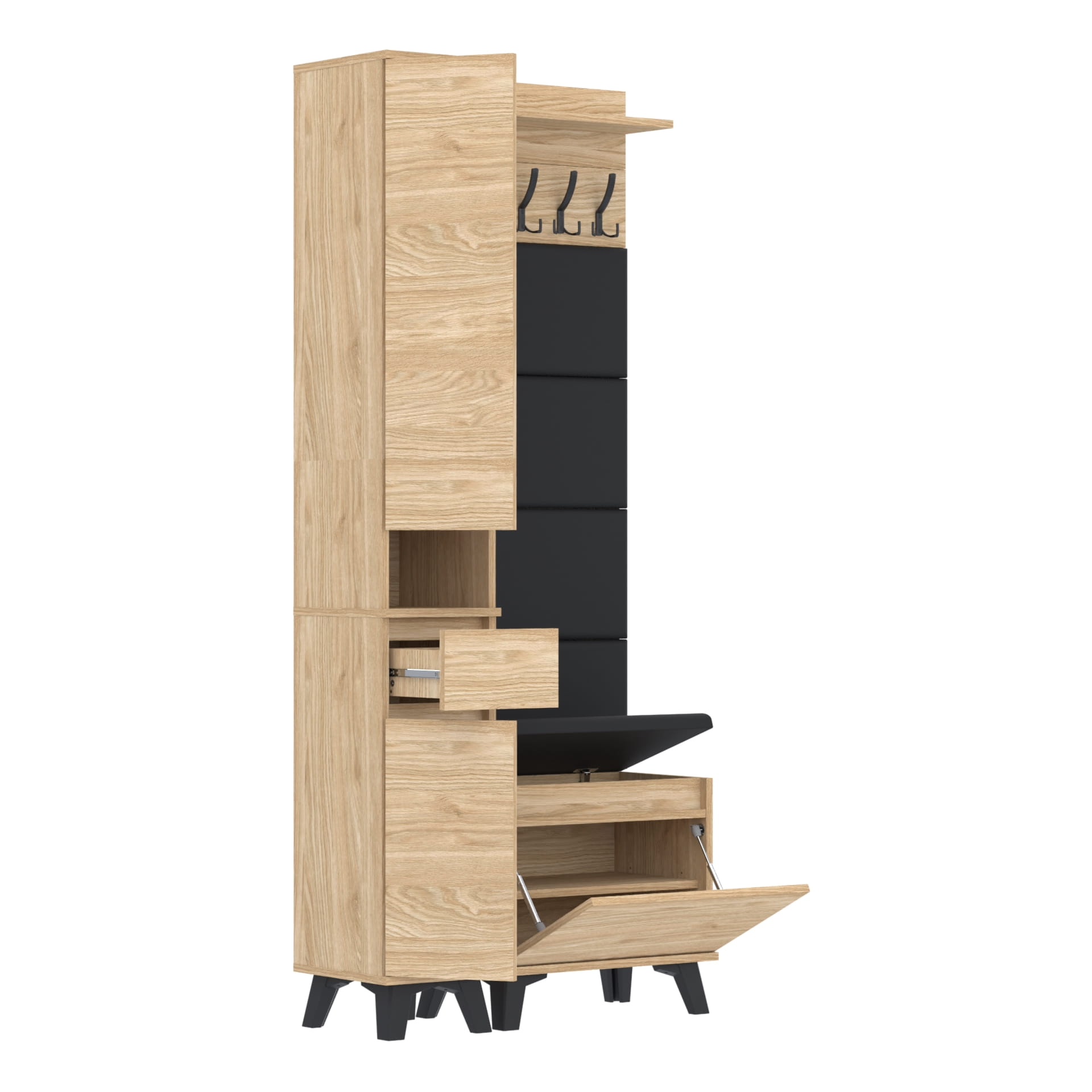 Szafka na buty jest nie tylko wygodna, ale także praktyczna - wewnątrz znajduje się półka, która pozwala na przechowywanie większej ilości obuwia. Dodatkowo, szafka jest wyposażona w schowek na przybory, dzięki czemu wszystko, czego potrzebujesz, jest zawsze pod ręką.
