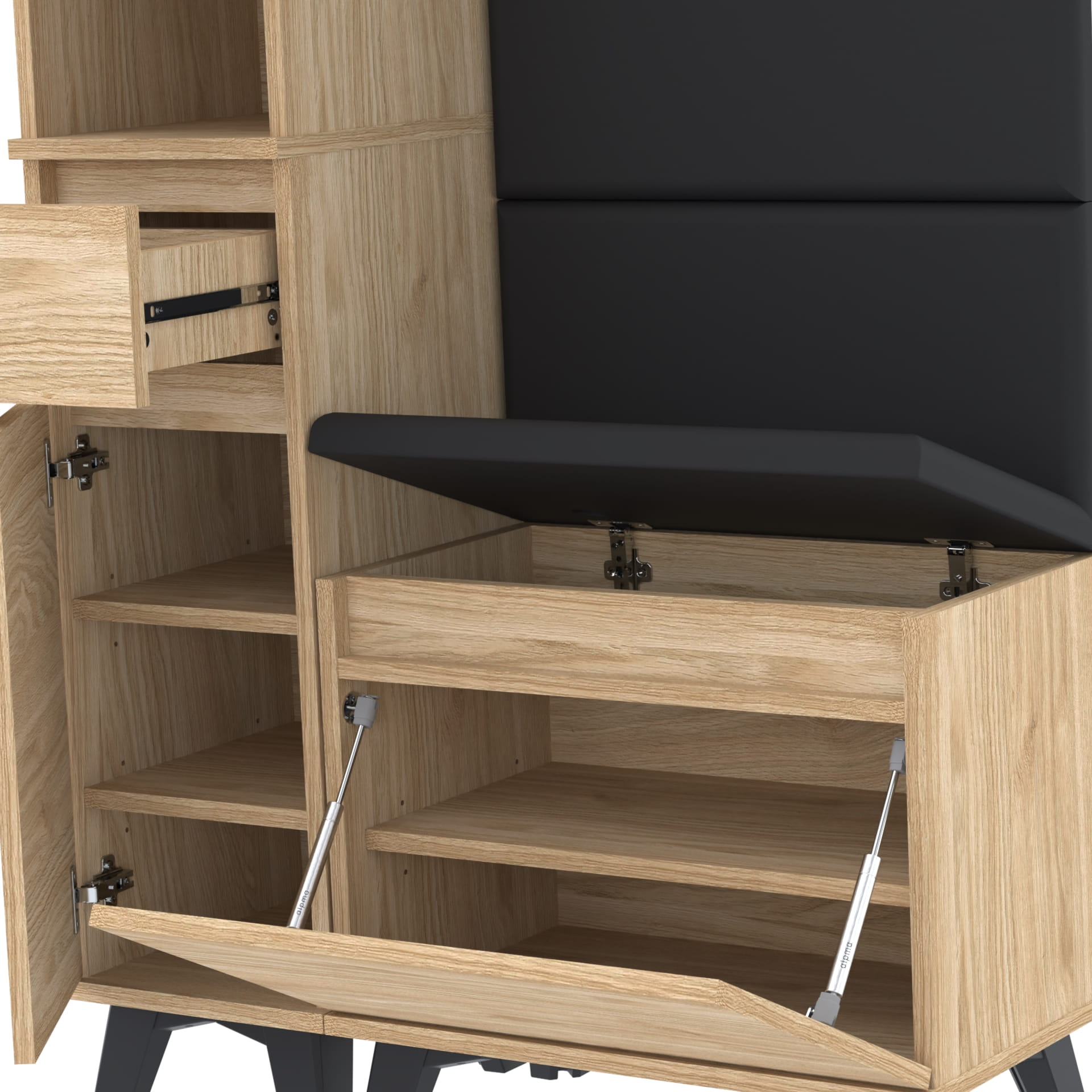 Szafka na buty z siedziskiem to doskonałe połączenie funkcjonalności i wygody. Wyprodukowana w Polsce, doskonale wpasuje się w styl każdego przedpokoju. Siedzisko, obite miękkim, wysokiej jakości materiałem, zapewnia komfort podczas zakładania butów.