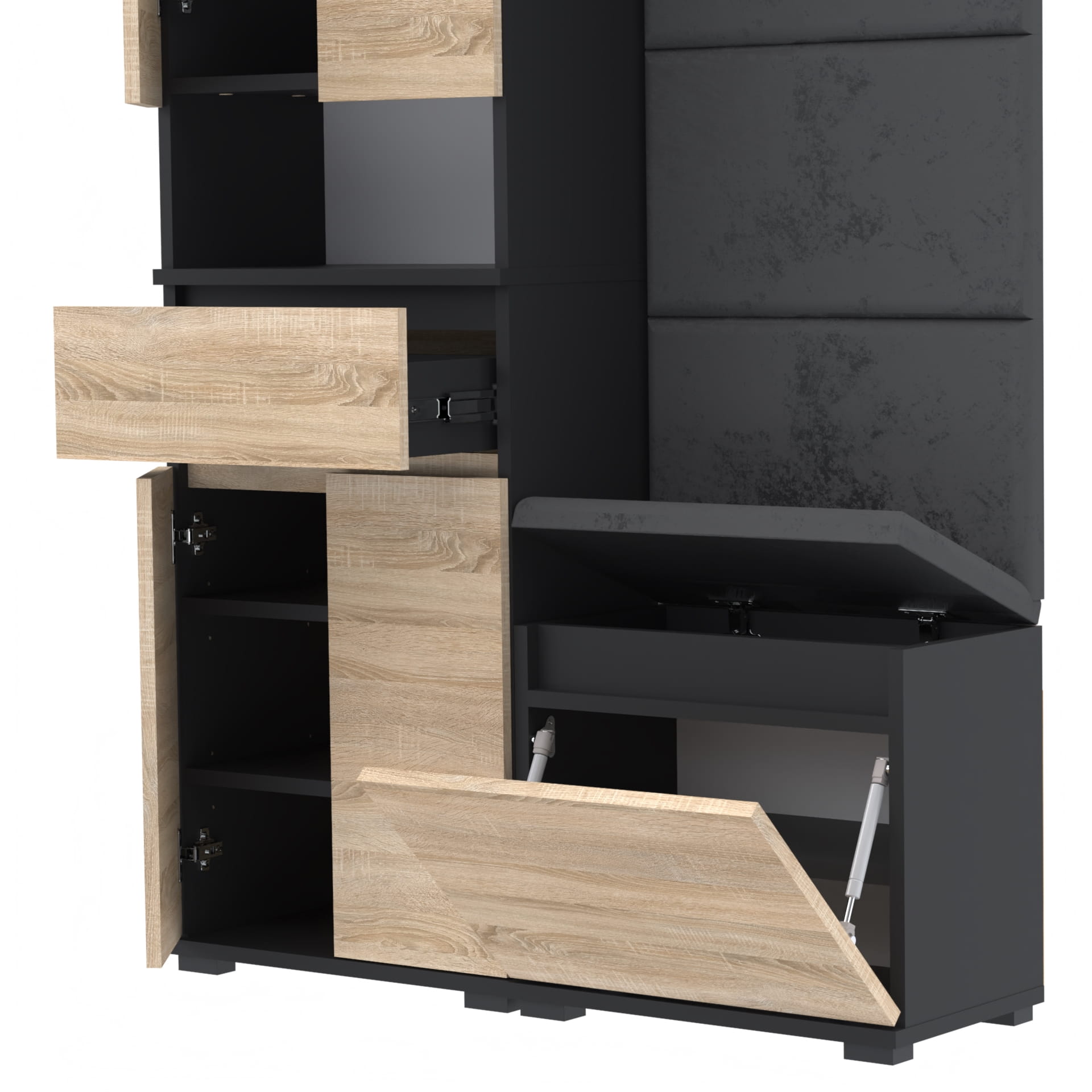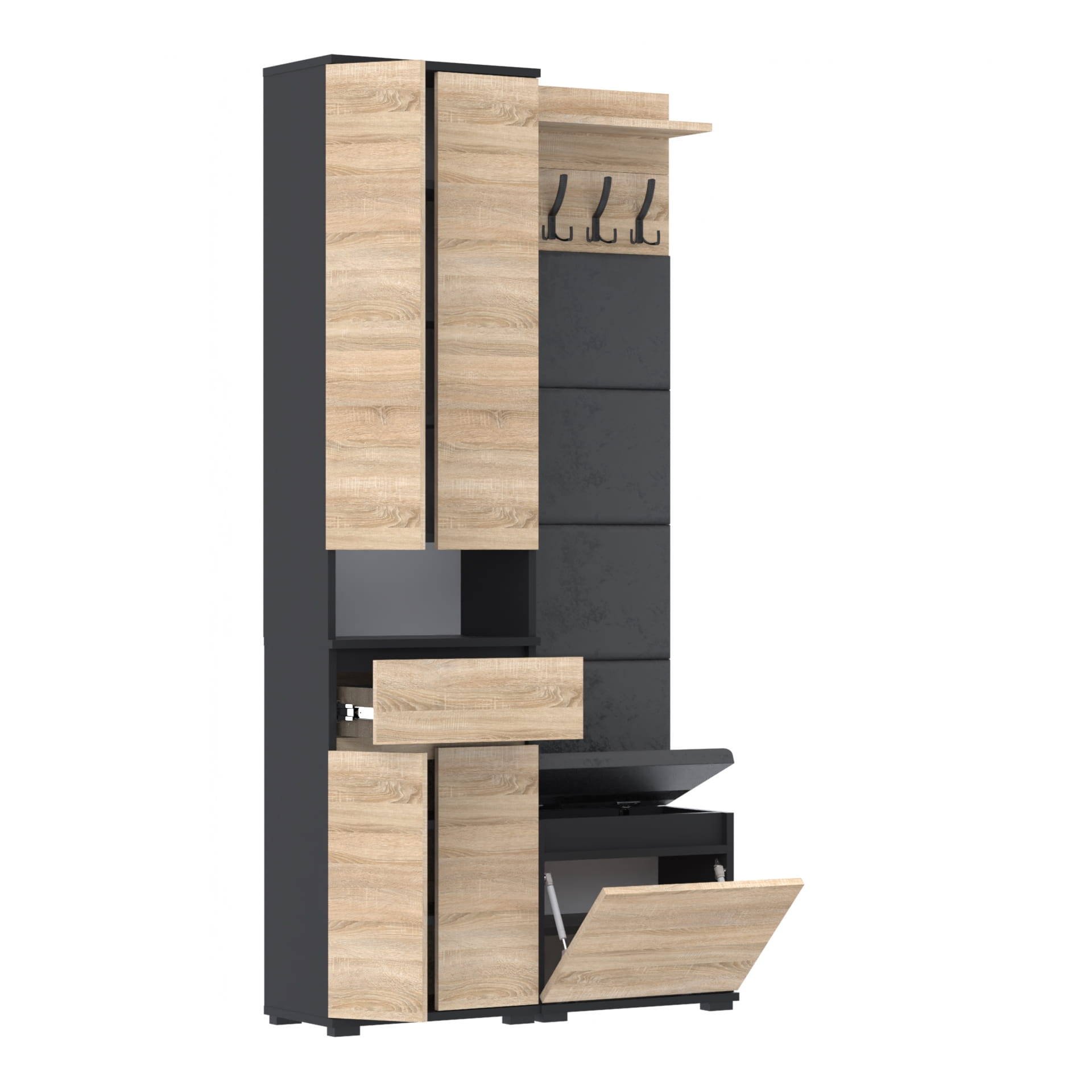 Garderoba 100x30D1N1 Supra50 VB50 4 Panele WP50 CZARNY SONOMA