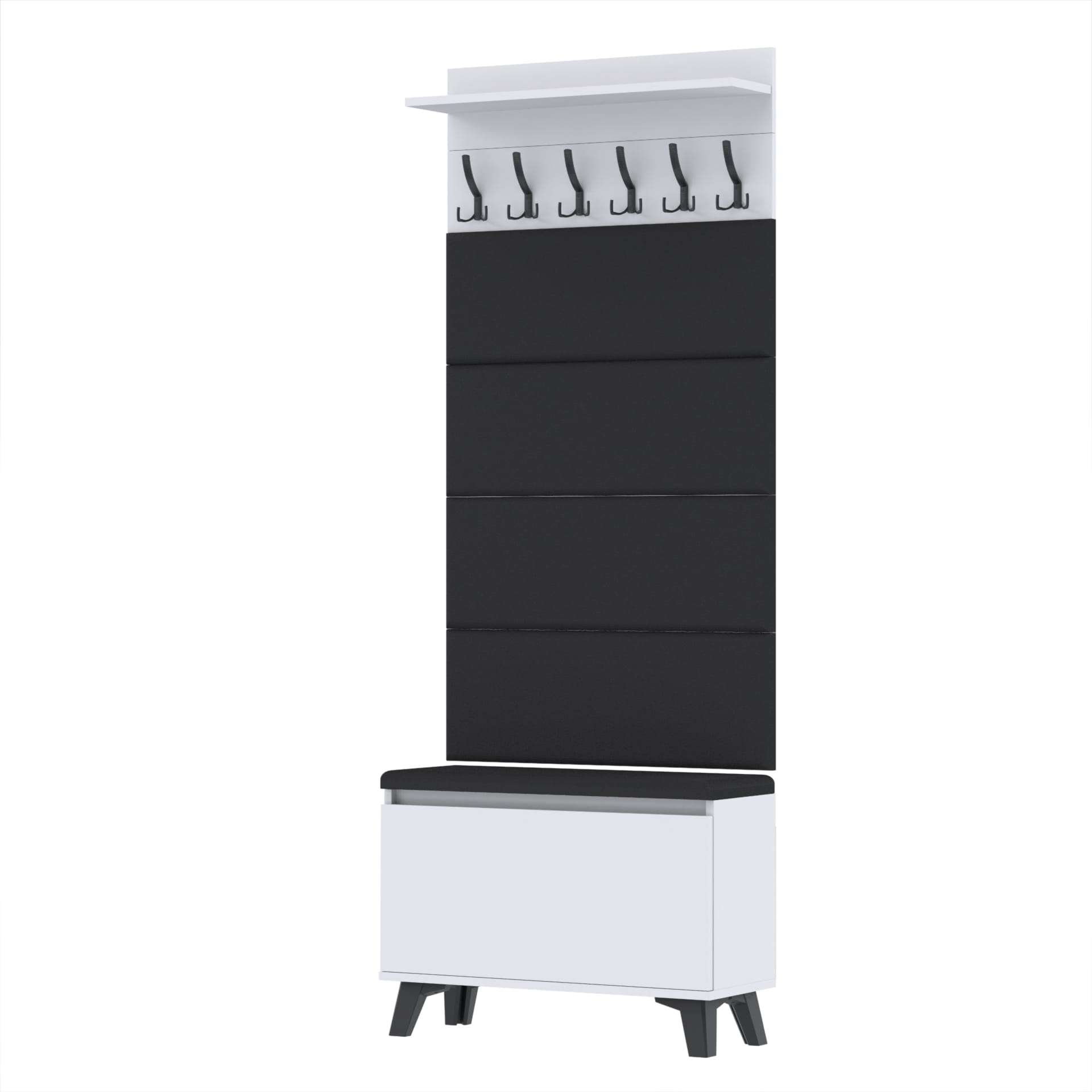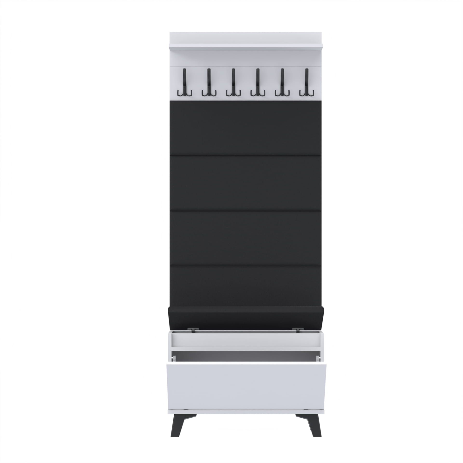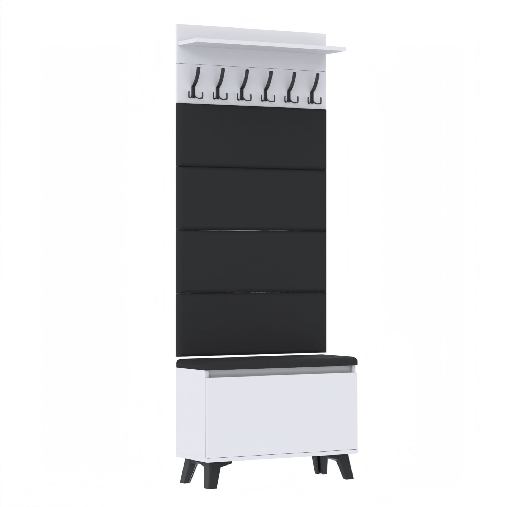 Materiał: Płyta meblowa 18mm, obrzeże ABS, okucia metalowe, nóżki tworzywo sztuczne, haki wieszaka metalowe.