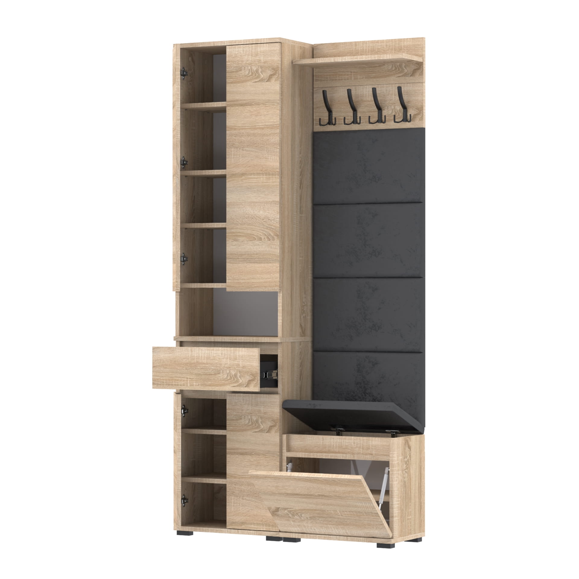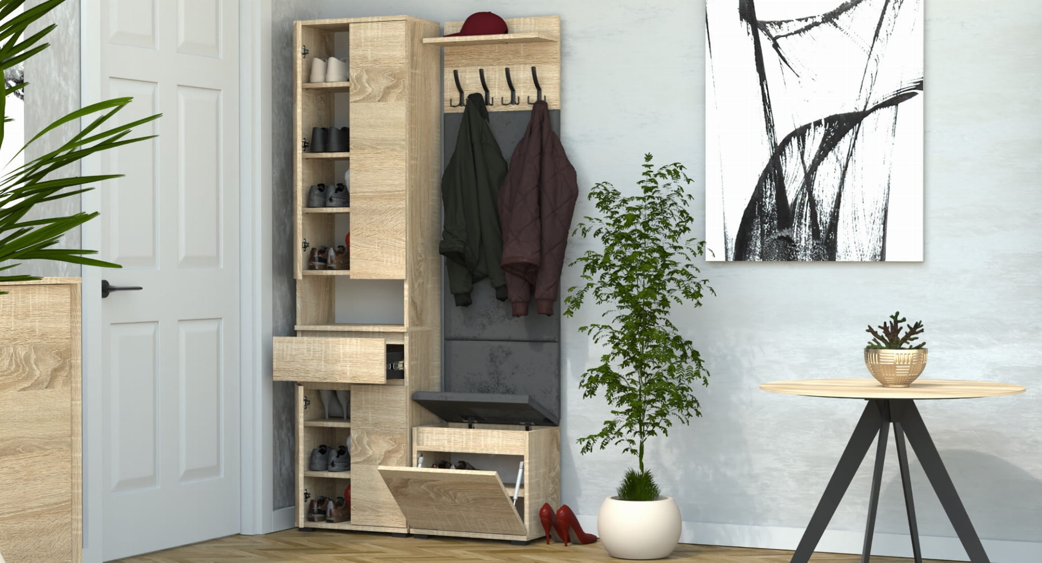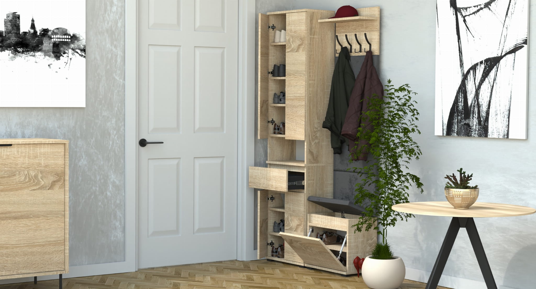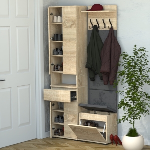 Szafka na buty jest nie tylko wygodna, ale także praktyczna - wewnątrz znajduje się półka, która pozwala na przechowywanie większej ilości obuwia. Dodatkowo, szafka jest wyposażona w schowek na przybory, dzięki czemu wszystko, czego potrzebujesz, jest zawsze pod ręką.