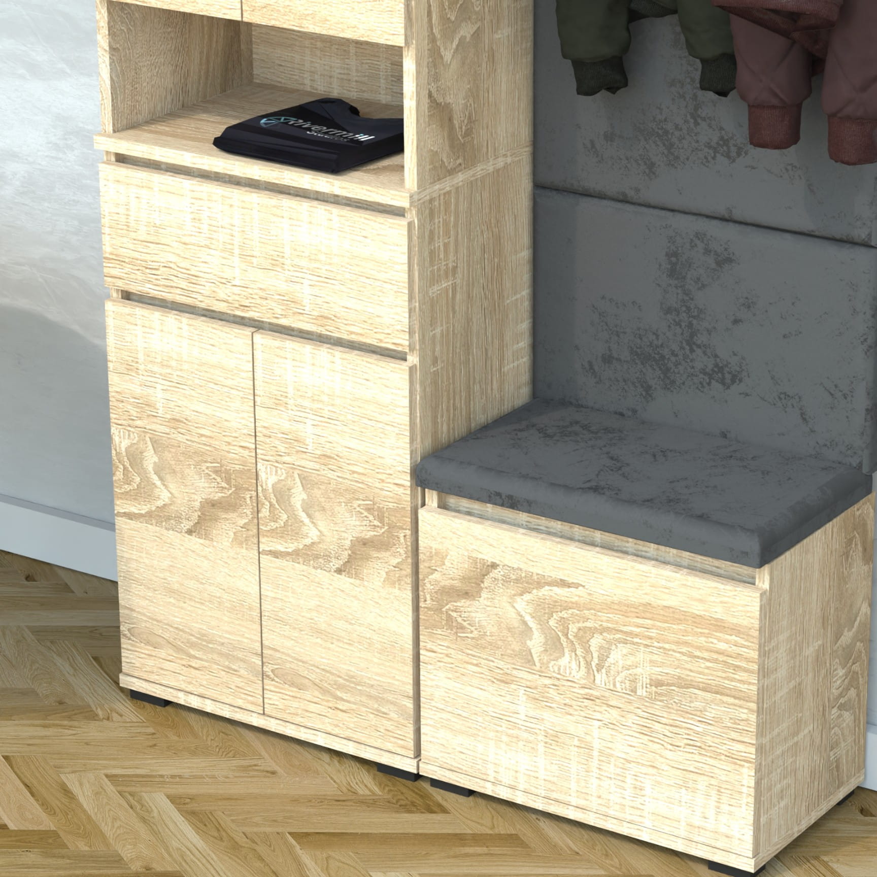 Szafka na buty z siedziskiem to doskonałe połączenie funkcjonalności i wygody. Wyprodukowana w Polsce, doskonale wpasuje się w styl każdego przedpokoju. Siedzisko, obite miękkim, wysokiej jakości materiałem, zapewnia komfort podczas zakładania butów.