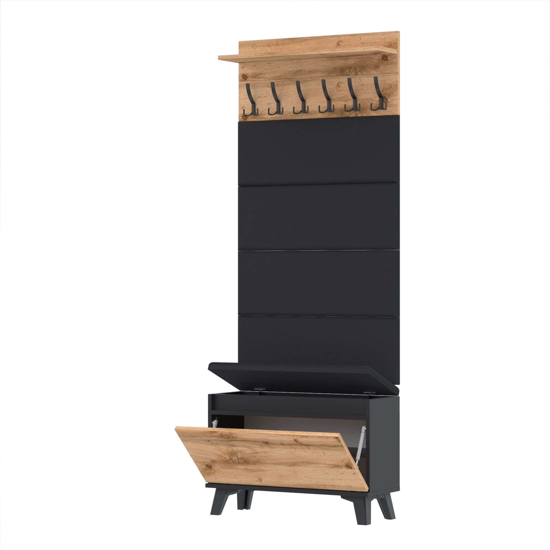 Garderoba 100x36D1N2 4PAN szafka na buty wieszak panele CZARNY WOTAN
