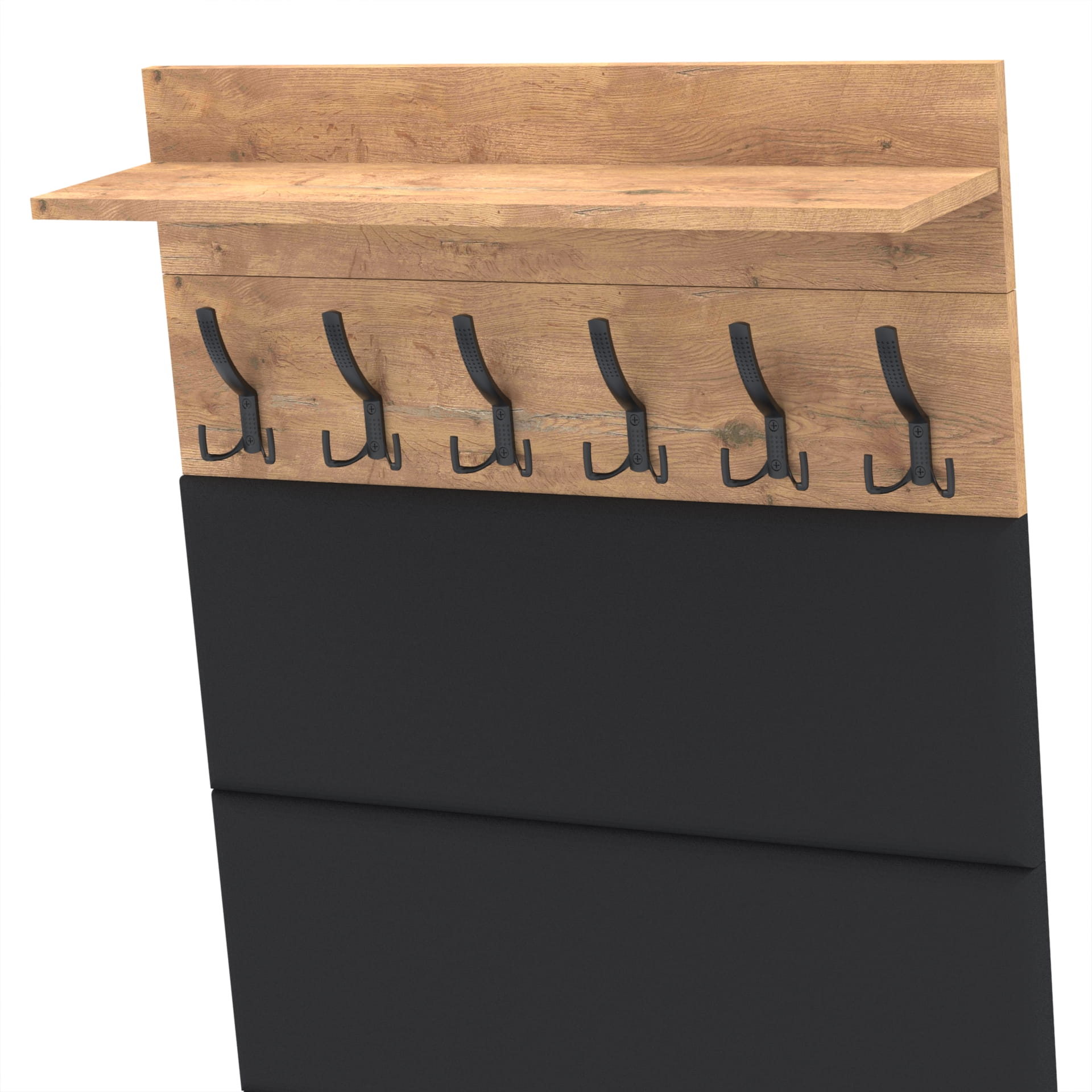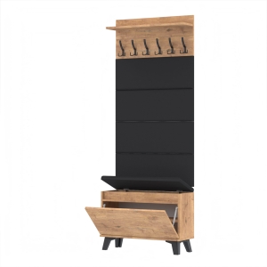 Materiał: Płyta meblowa 18mm, obrzeże ABS, okucia metalowe, nóżki tworzywo sztuczne, haki wieszaka metalowe.