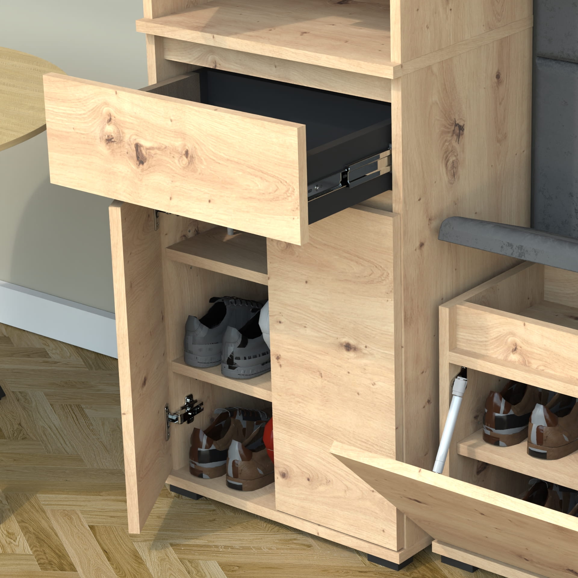 - szafka na buty z siedziskiem i schowkiem,