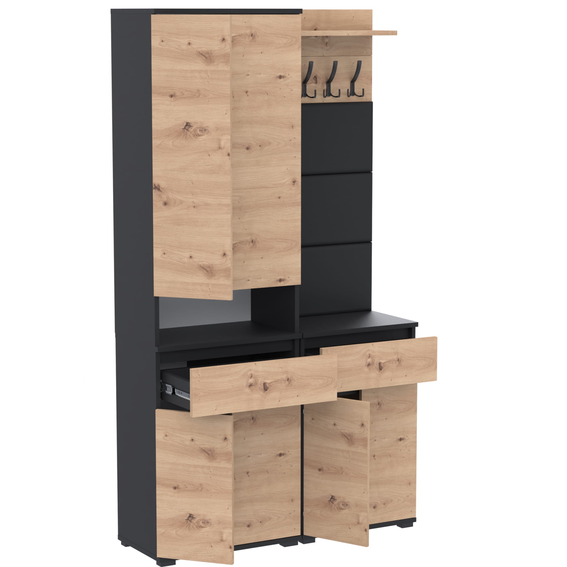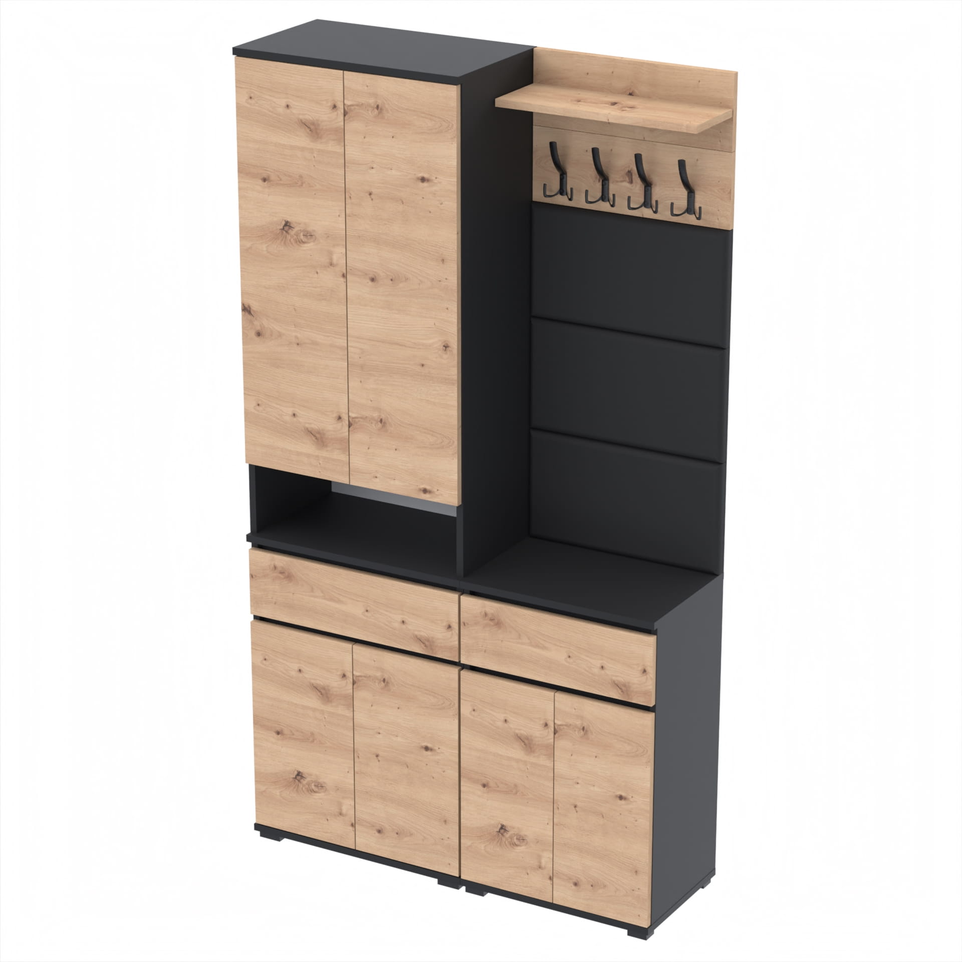 Garderoba: Szafa Supra 60, Szafka Tres 50, Tapicerowane Panele Ścienne i Wieszak z Półką