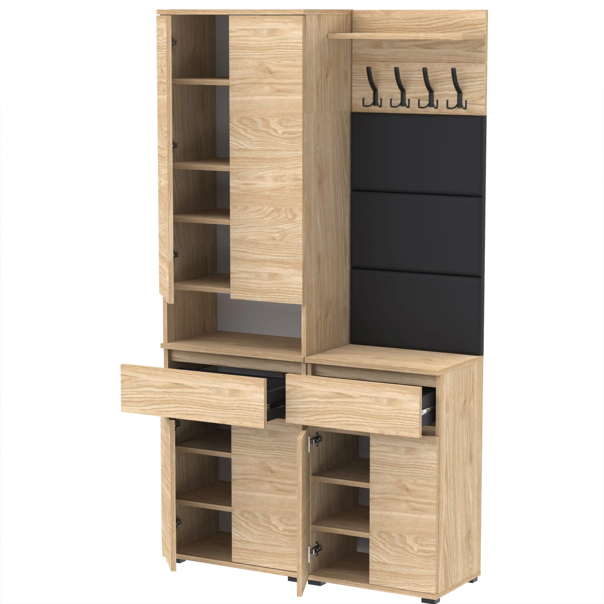 Meble wyprodukowane w Polsce, przeznaczone do przedpokoju. Doskonałe do przechowywania ubrań, obuwia i innych przedmiotów codziennego użytku. Wykonane z wysokiej jakości płyt meblowych renomowanych producentów, posiadają niezbędne certyfikaty i atesty higieniczne.