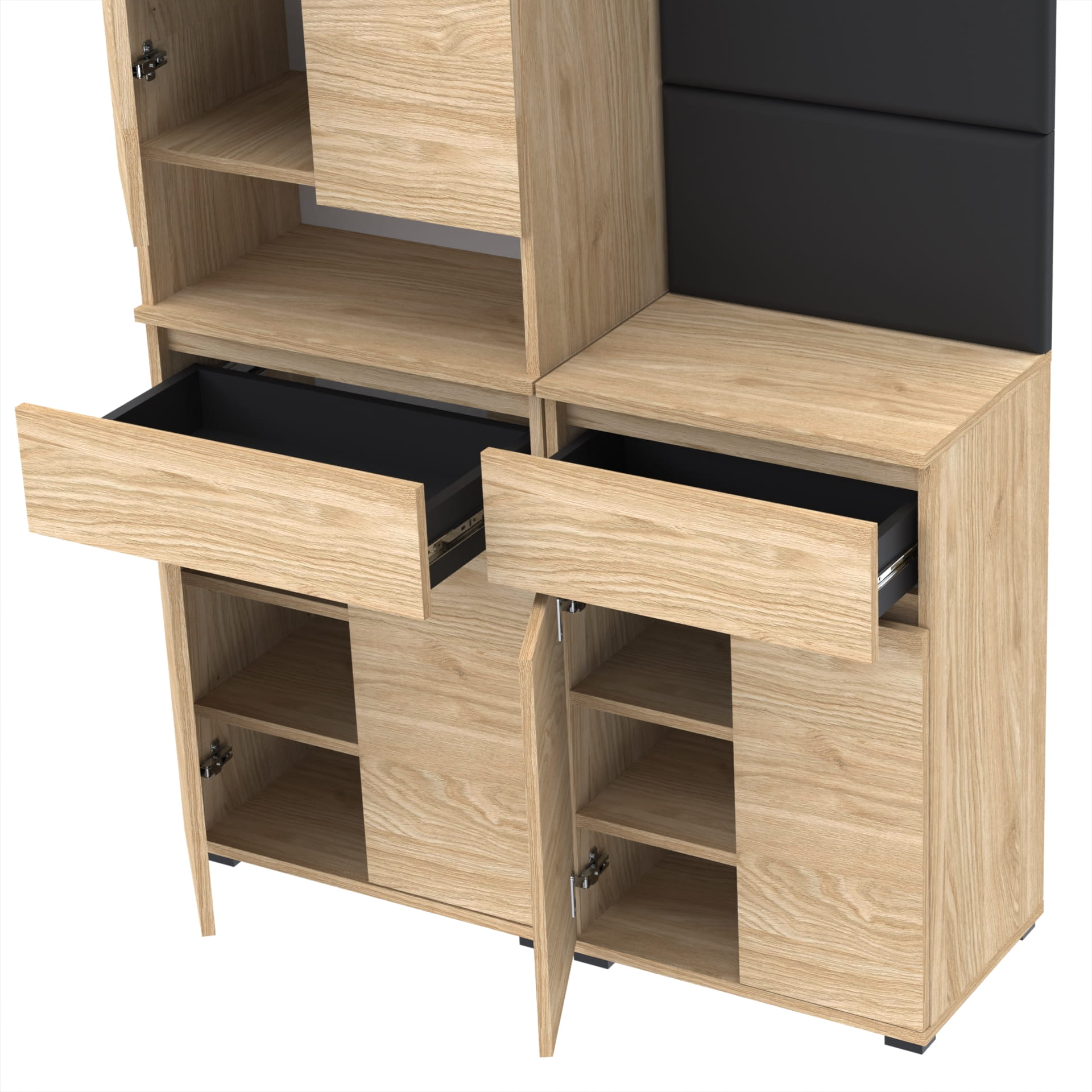 Zestaw szafa Supra z komodą Tres, panele ścienne, wieszak.