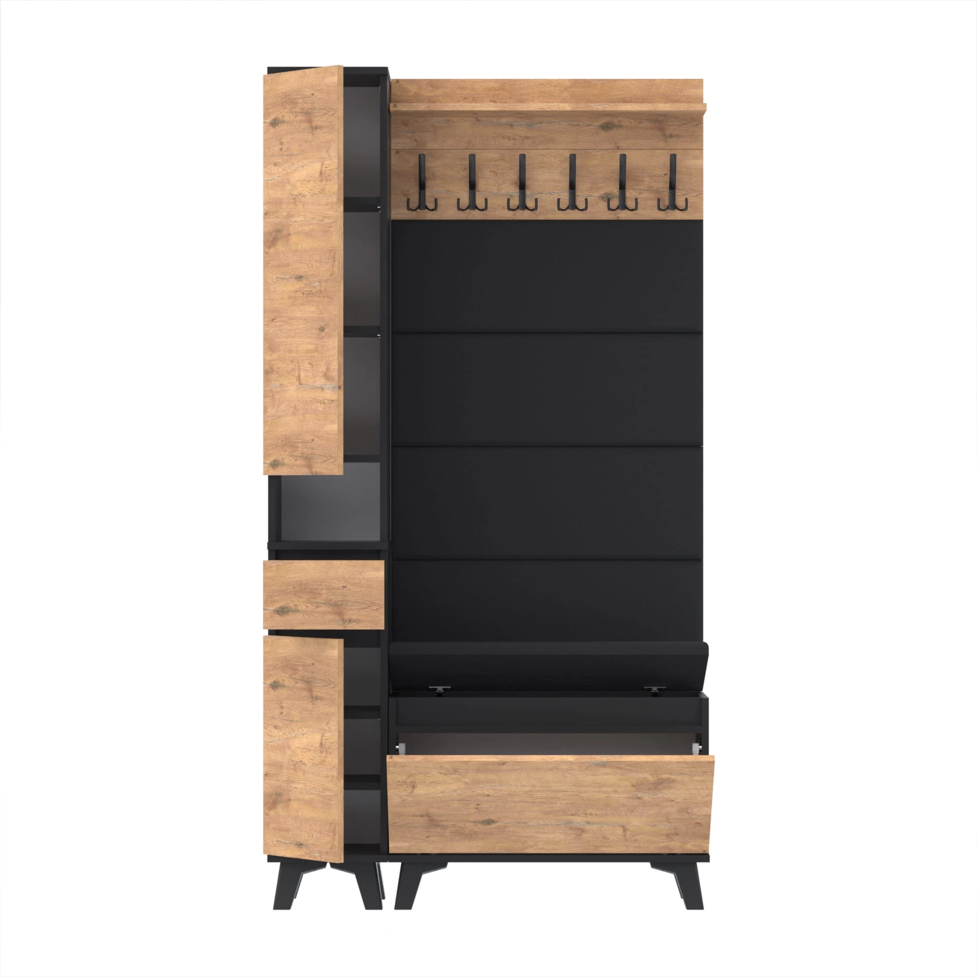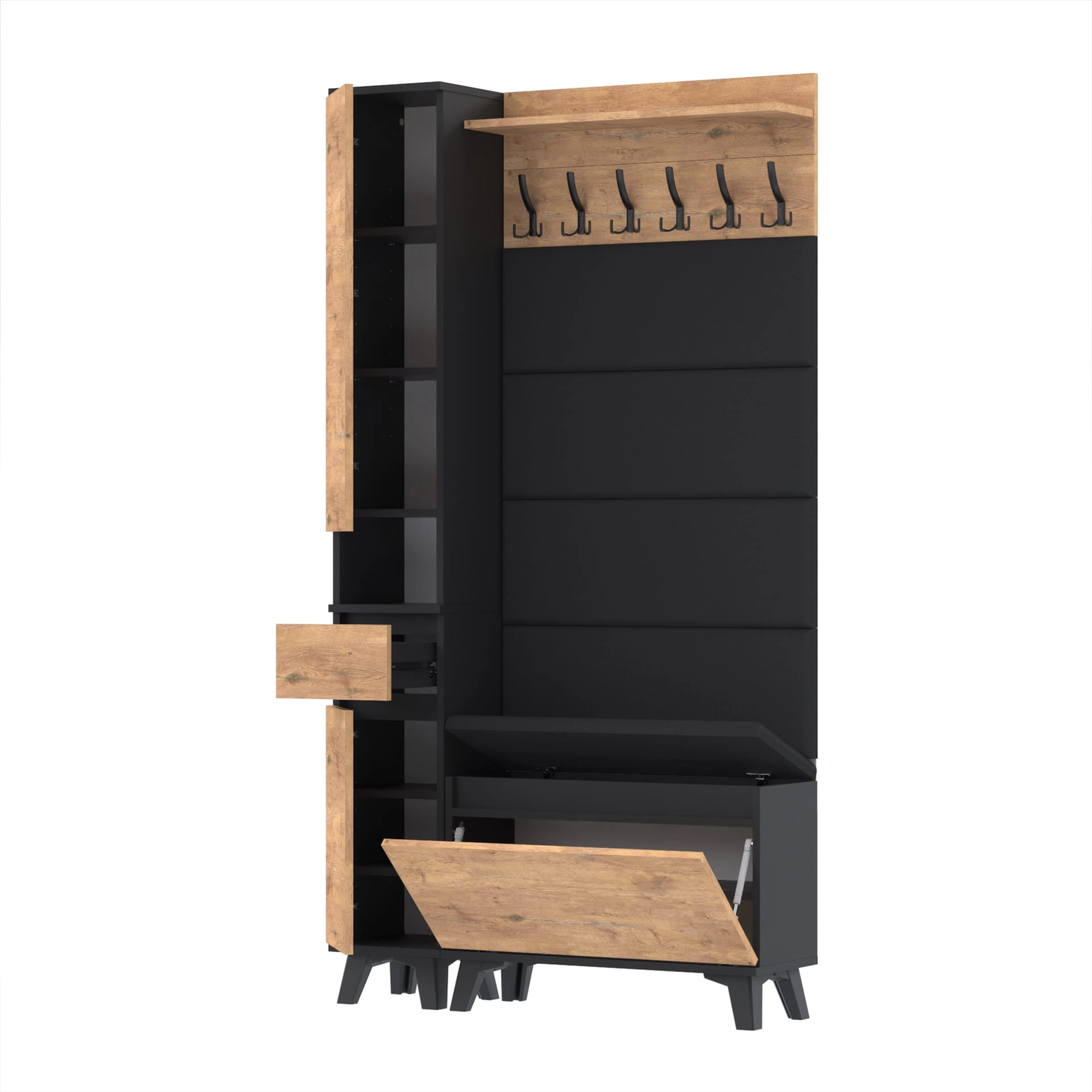 Szafka na buty jest nie tylko wygodna, ale także praktyczna - wewnątrz znajduje się półka, która pozwala na przechowywanie większej ilości obuwia. Dodatkowo, szafka jest wyposażona w schowek na przybory, dzięki czemu wszystko, czego potrzebujesz, jest zawsze pod ręką.