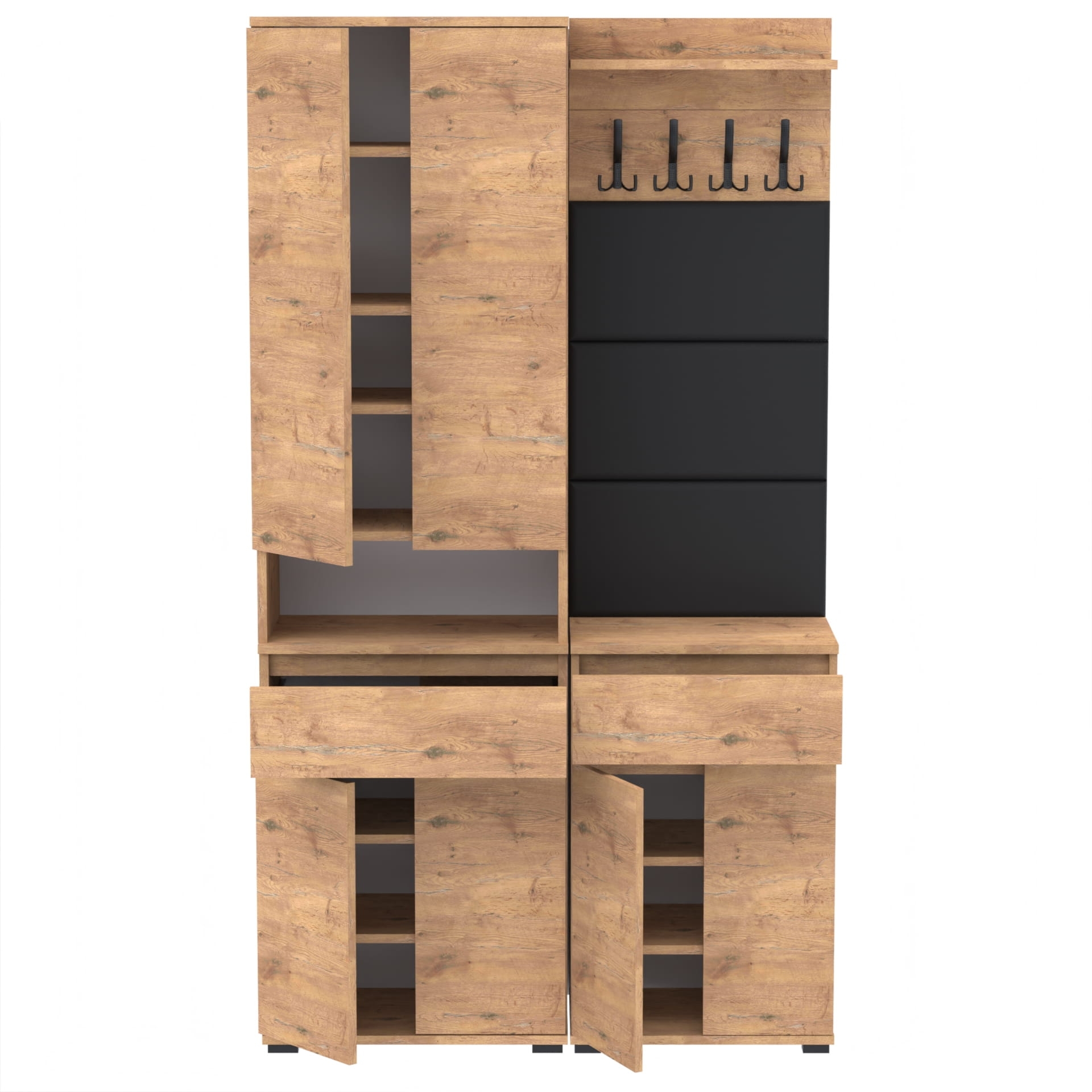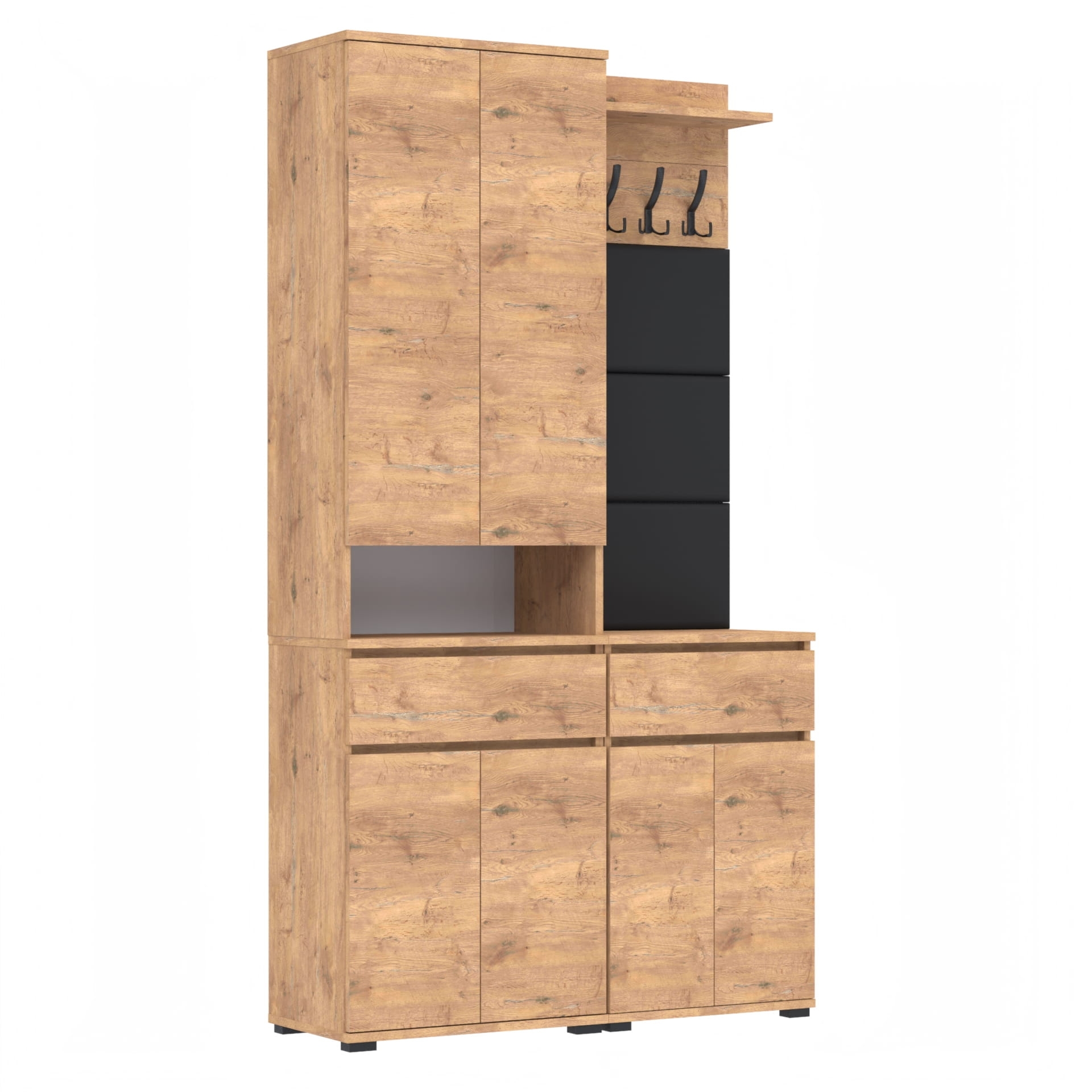 Meble wyprodukowane w Polsce, przeznaczone do przedpokoju. Doskonałe do przechowywania ubrań, obuwia i innych przedmiotów codziennego użytku. Wykonane z wysokiej jakości płyt meblowych renomowanych producentów, posiadają niezbędne certyfikaty i atesty higieniczne.