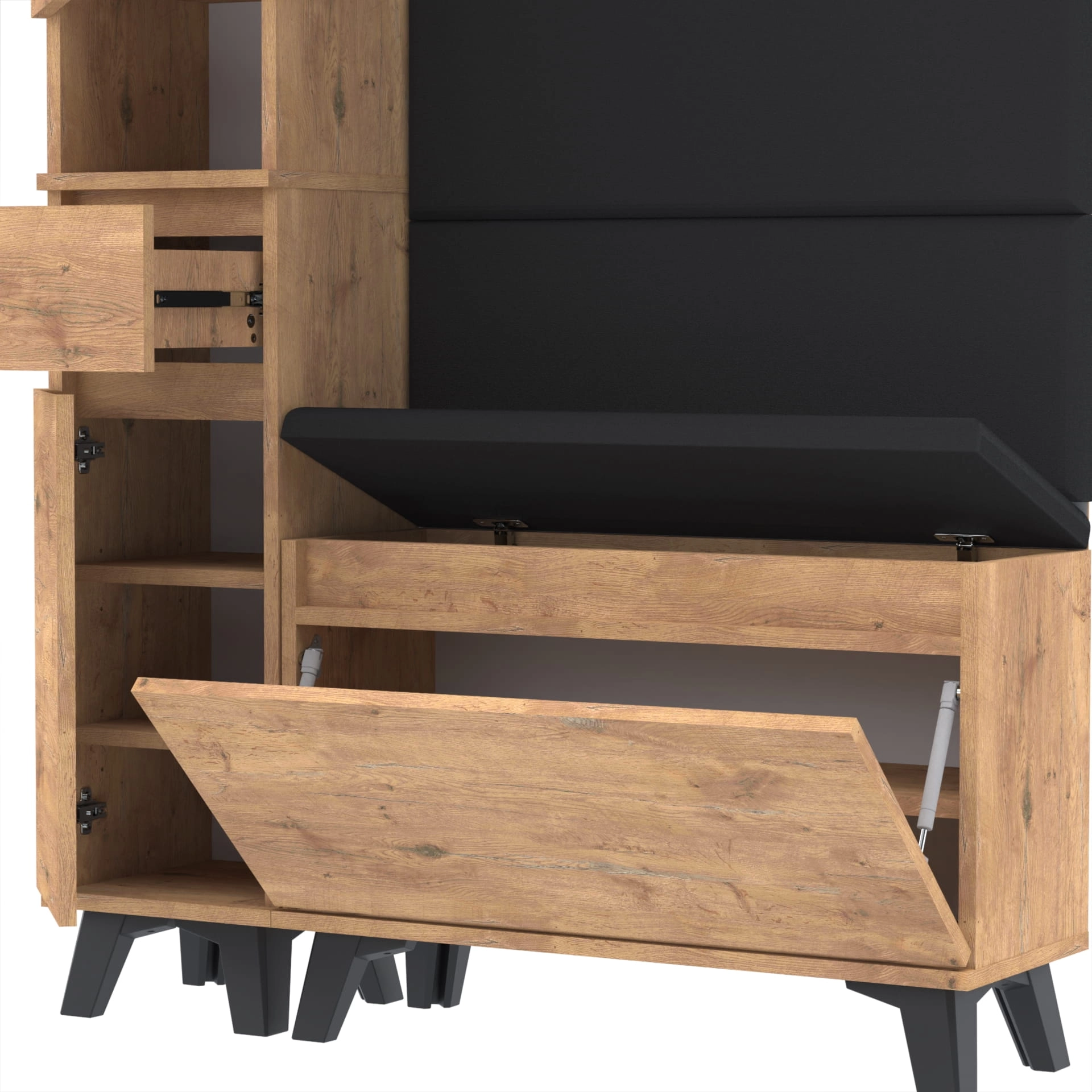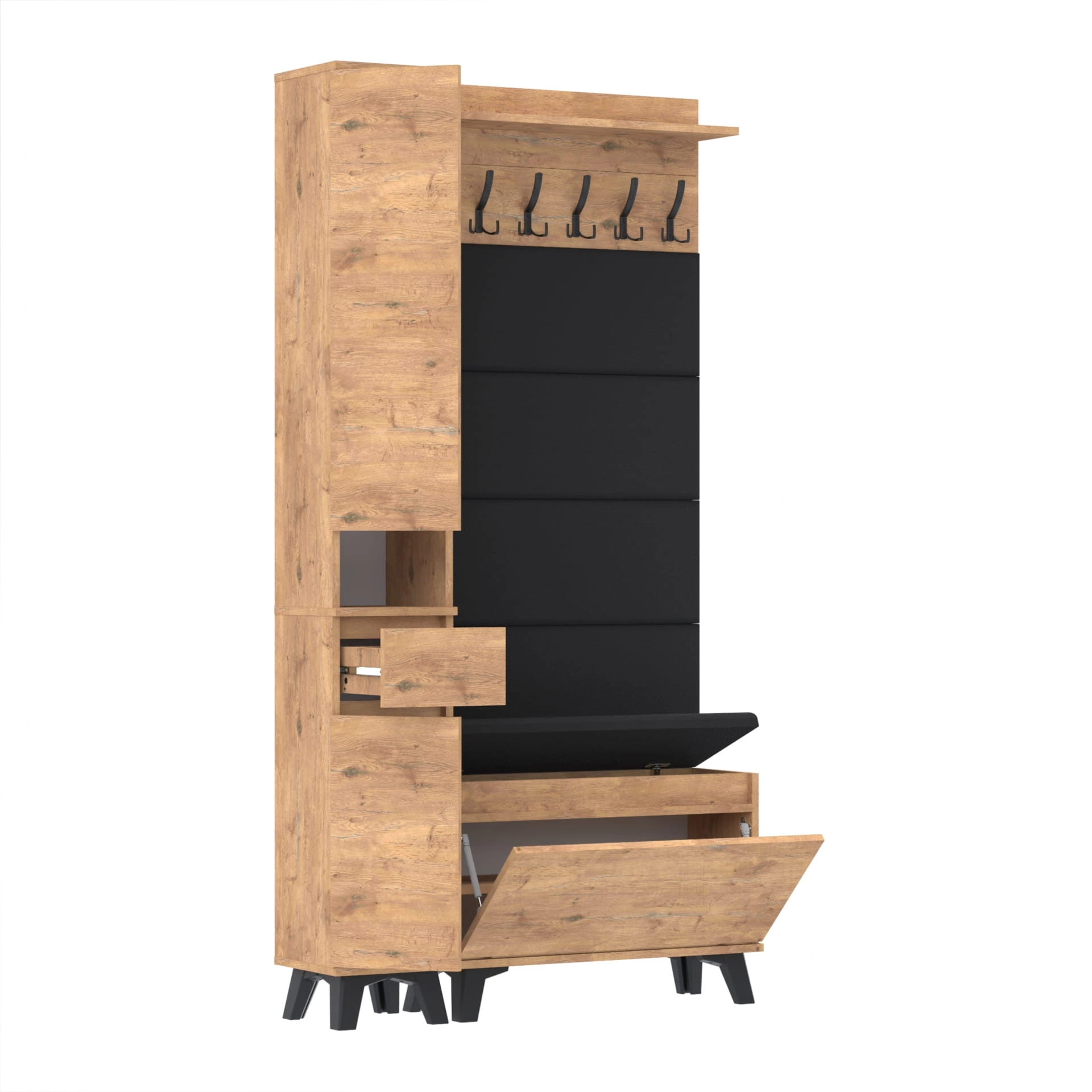Szafka na buty jest nie tylko wygodna, ale także praktyczna - wewnątrz znajduje się półka, która pozwala na przechowywanie większej ilości obuwia. Dodatkowo, szafka jest wyposażona w schowek na przybory, dzięki czemu wszystko, czego potrzebujesz, jest zawsze pod ręką.