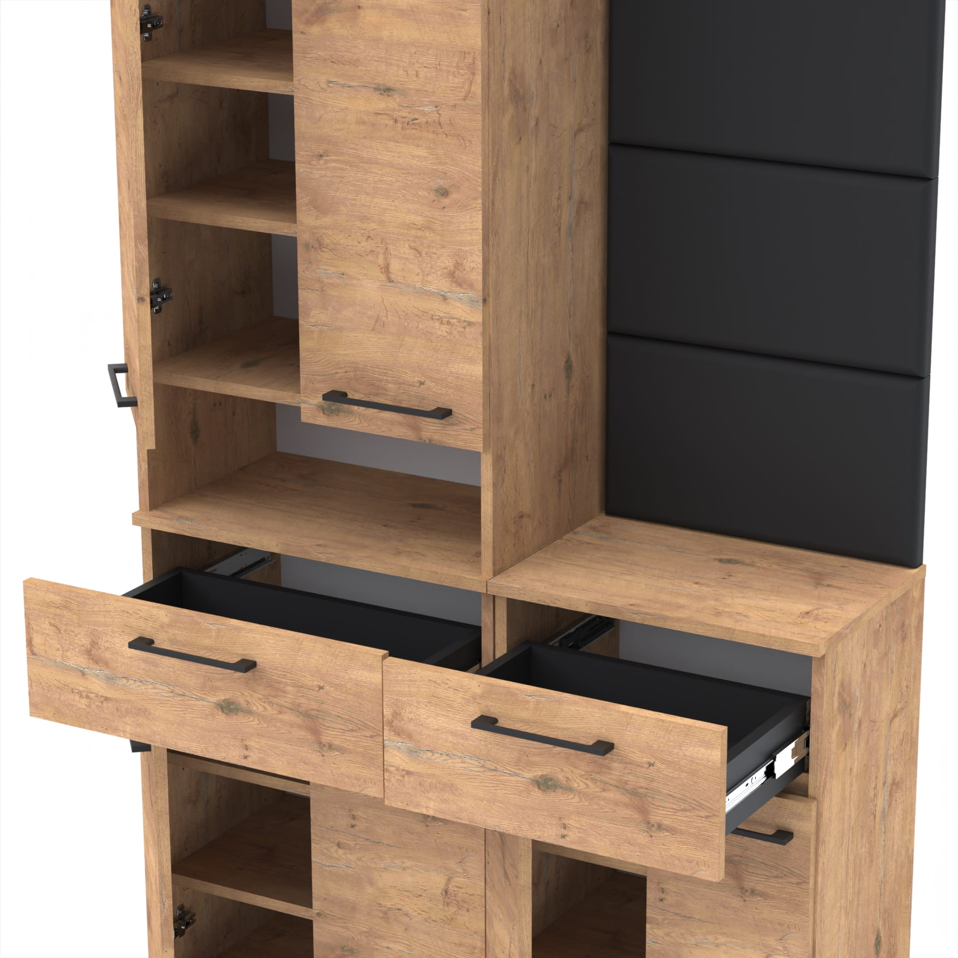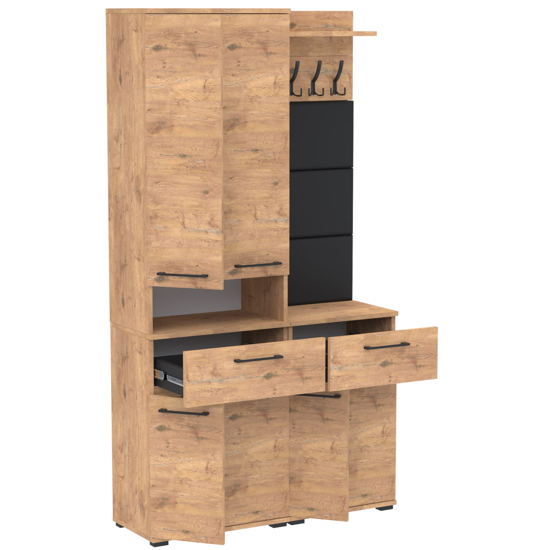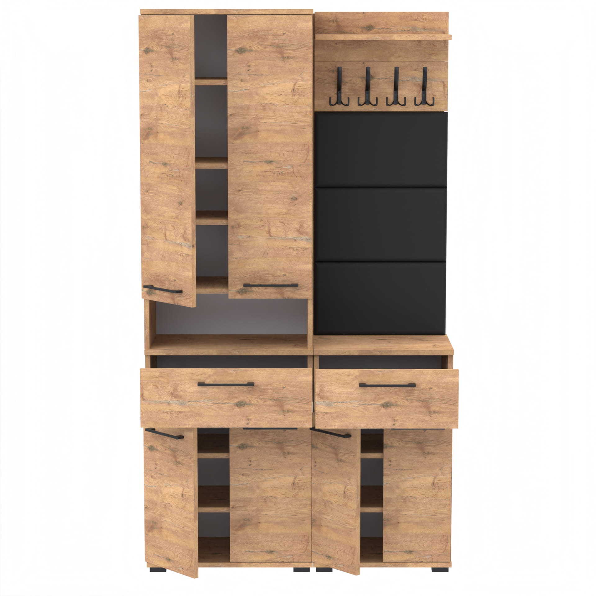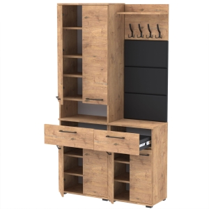 Meble wyprodukowane w Polsce, przeznaczone do przedpokoju. Doskonałe do przechowywania ubrań, obuwia i innych przedmiotów codziennego użytku. Wykonane z wysokiej jakości płyt meblowych renomowanych producentów, posiadają niezbędne certyfikaty i atesty higieniczne.