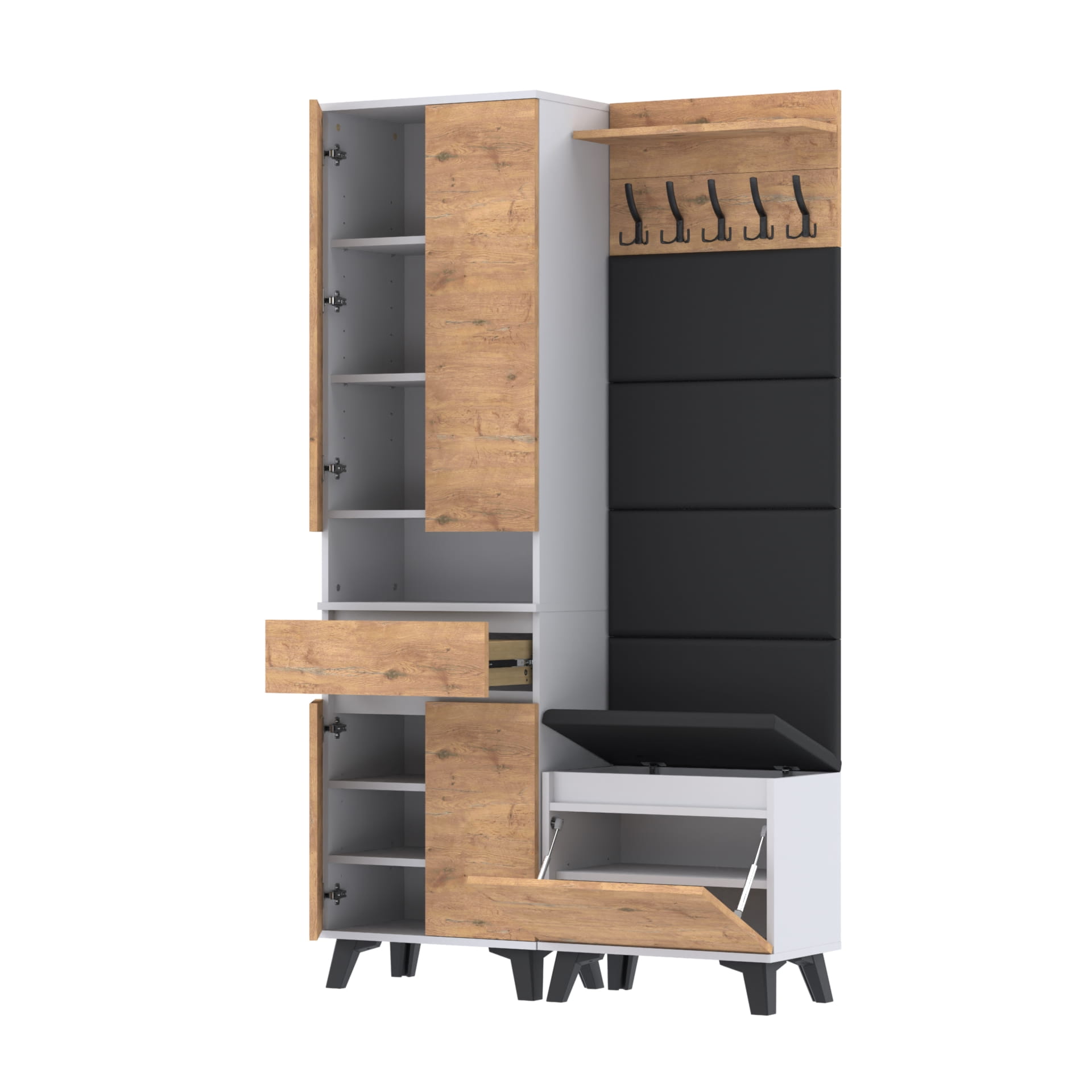 Szafka na buty jest nie tylko wygodna, ale także praktyczna - wewnątrz znajduje się półka, która pozwala na przechowywanie większej ilości obuwia. Dodatkowo, szafka jest wyposażona w schowek na przybory, dzięki czemu wszystko, czego potrzebujesz, jest zawsze pod ręką.