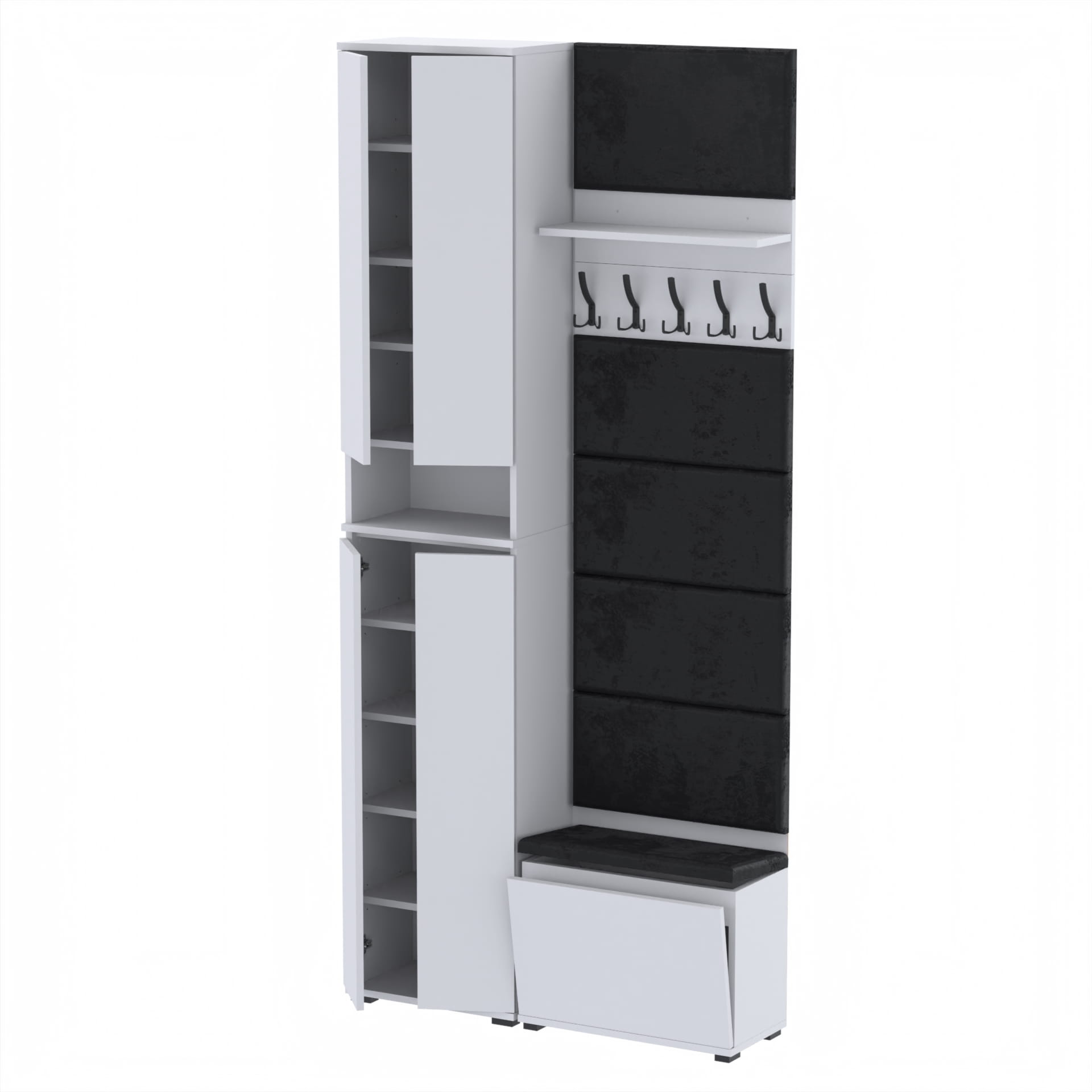 Garderoba 120x36x244 D1N1 Szafka na buty NEX60, VB60, Wieszak i Panele Ścienne - Nowoczesny Zestaw do przedpokoju BIAŁY