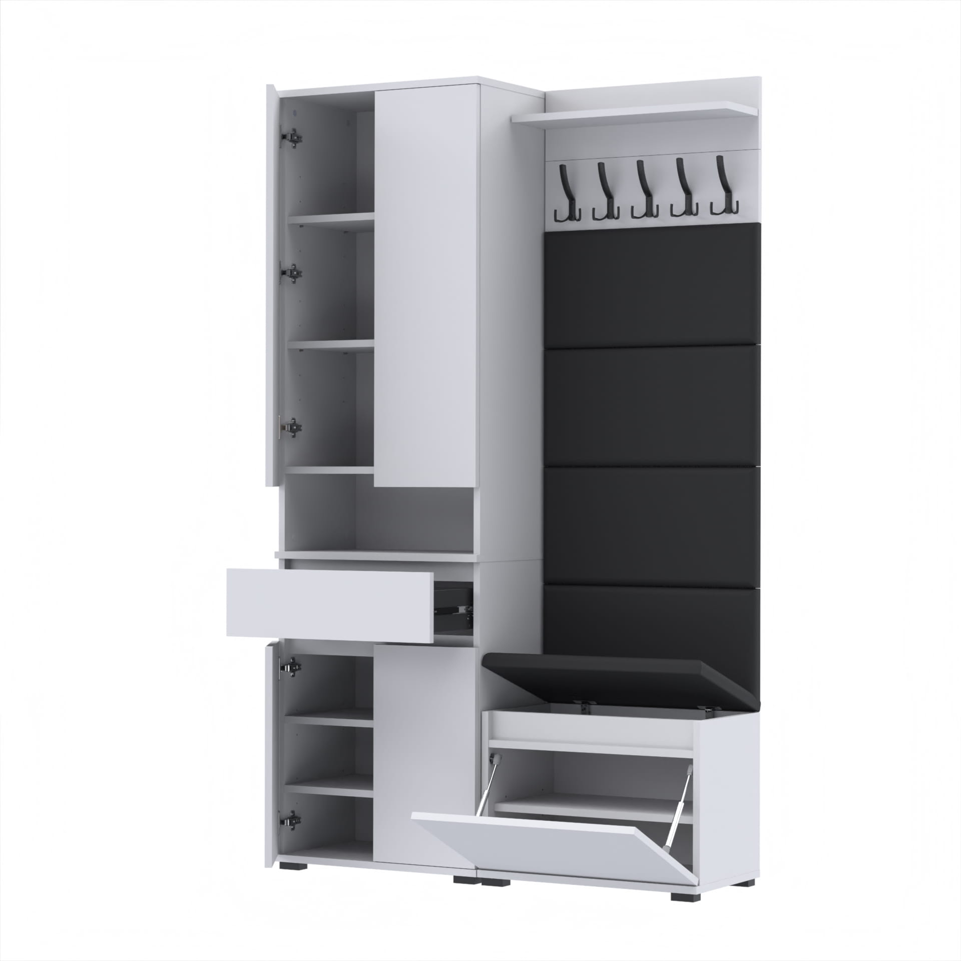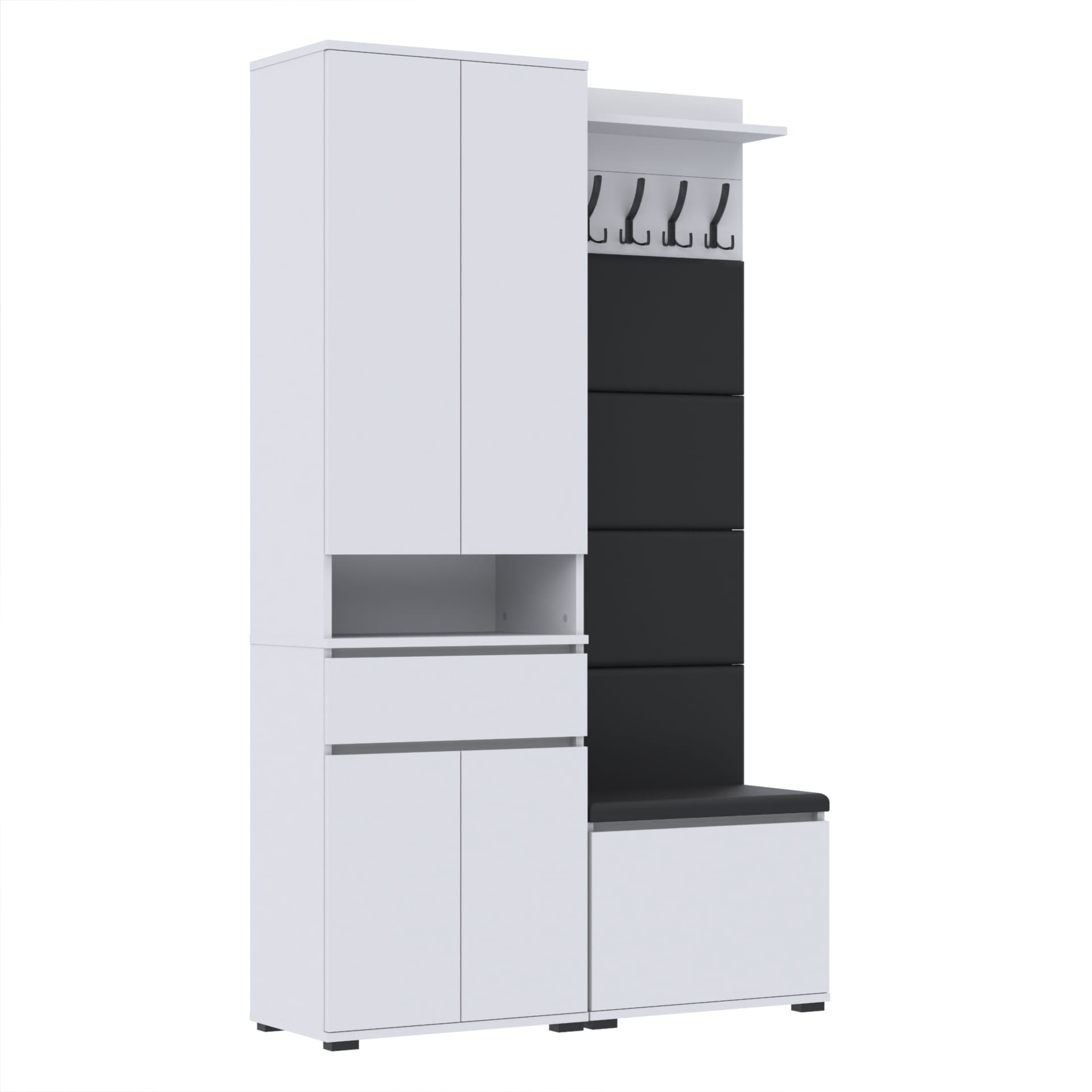 Zestaw szafka na buty z siedziskiem, Komoda Tres z nadstawką SUPRA, Panele ścienne, Wieszak
