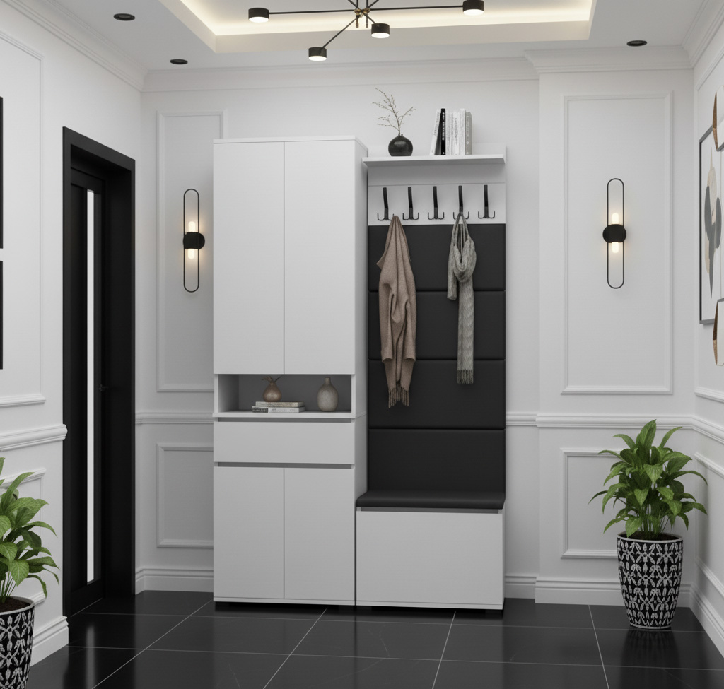 Meble wyprodukowane w Polsce, przeznaczone do przedpokoju. Doskonałe do przechowywania ubrań, obuwia i innych przedmiotów codziennego użytku. Wykonane z wysokiej jakości płyt meblowych renomowanych producentów, posiadają niezbędne certyfikaty i atesty higieniczne.