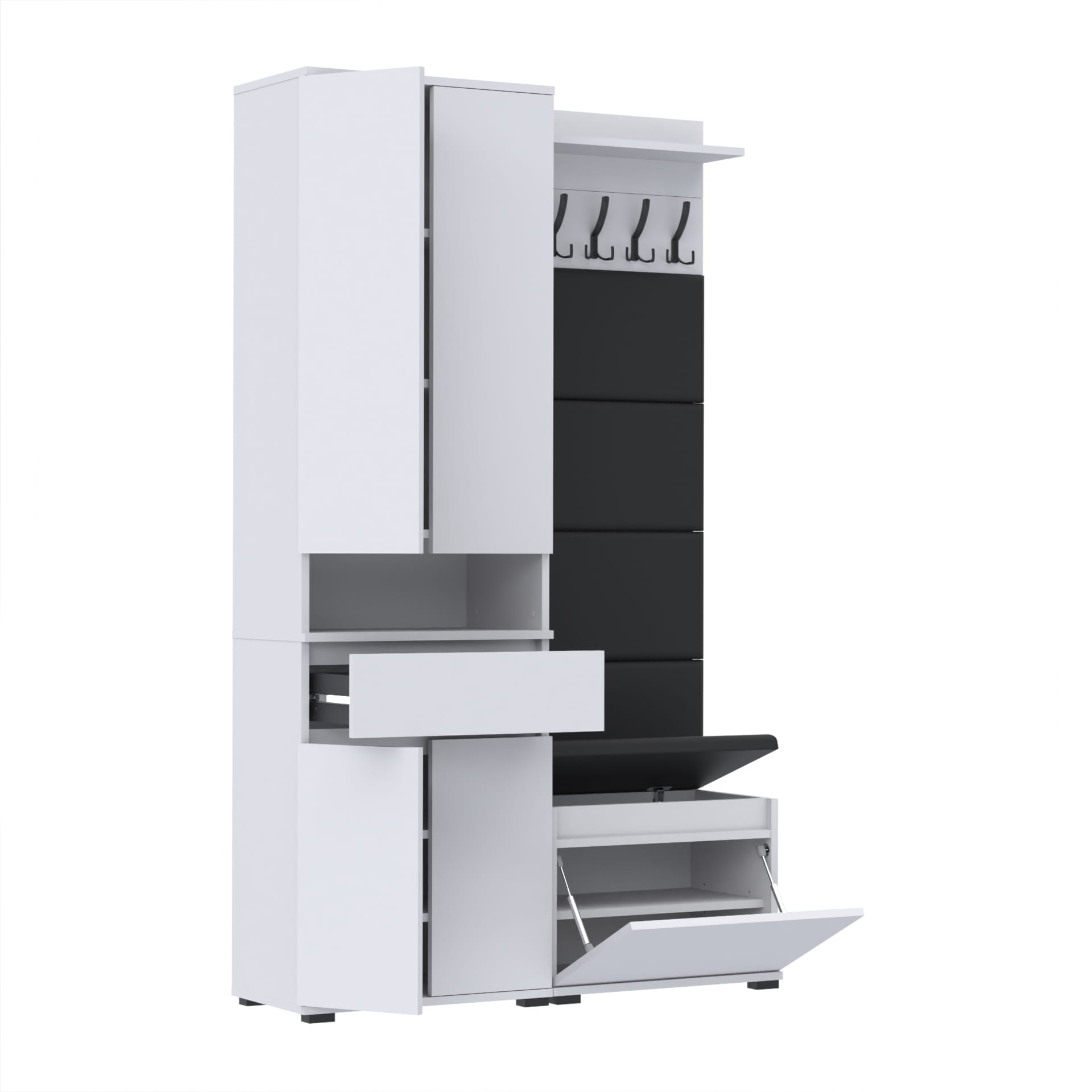 Zestaw szafka na buty z siedziskiem, Komoda Tres z nadstawką SUPRA, Panele ścienne, Wieszak