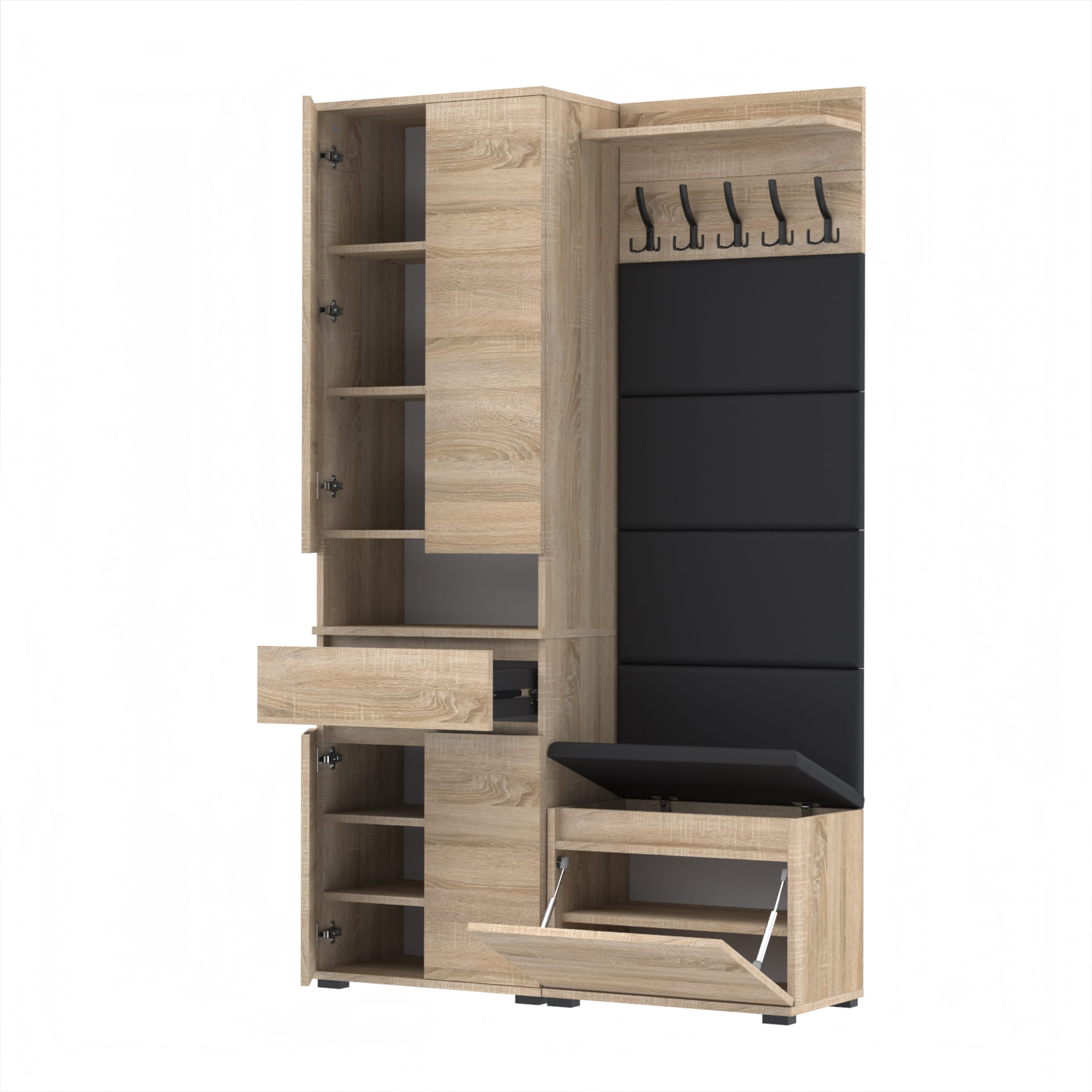Meble wyprodukowane w Polsce, przeznaczone do przedpokoju. Doskonałe do przechowywania ubrań, obuwia i innych przedmiotów codziennego użytku. Wykonane z wysokiej jakości płyt meblowych renomowanych producentów, posiadają niezbędne certyfikaty i atesty higieniczne.