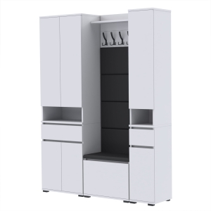 Garderoba to prawdziwy raj dla miłośników elegancji i funkcjonalności. To miejsce, które łączy styl z praktycznością, tworząc harmonijną przestrzeń do przechowywania i organizacji. Centralnym punktem tej garderoby jest szafka na buty z siedziskiem i schowkiem. To miejsce, w którym nie tylko przechowasz swoje ulubione obuwie, ale także znajdziesz wygodne miejsce do zdejmowania i zakładania butów. Schowek pozwoli Ci zachować porządek w garderobie, przechowując drobne przedmioty i akcesoria w jednym miejscu.