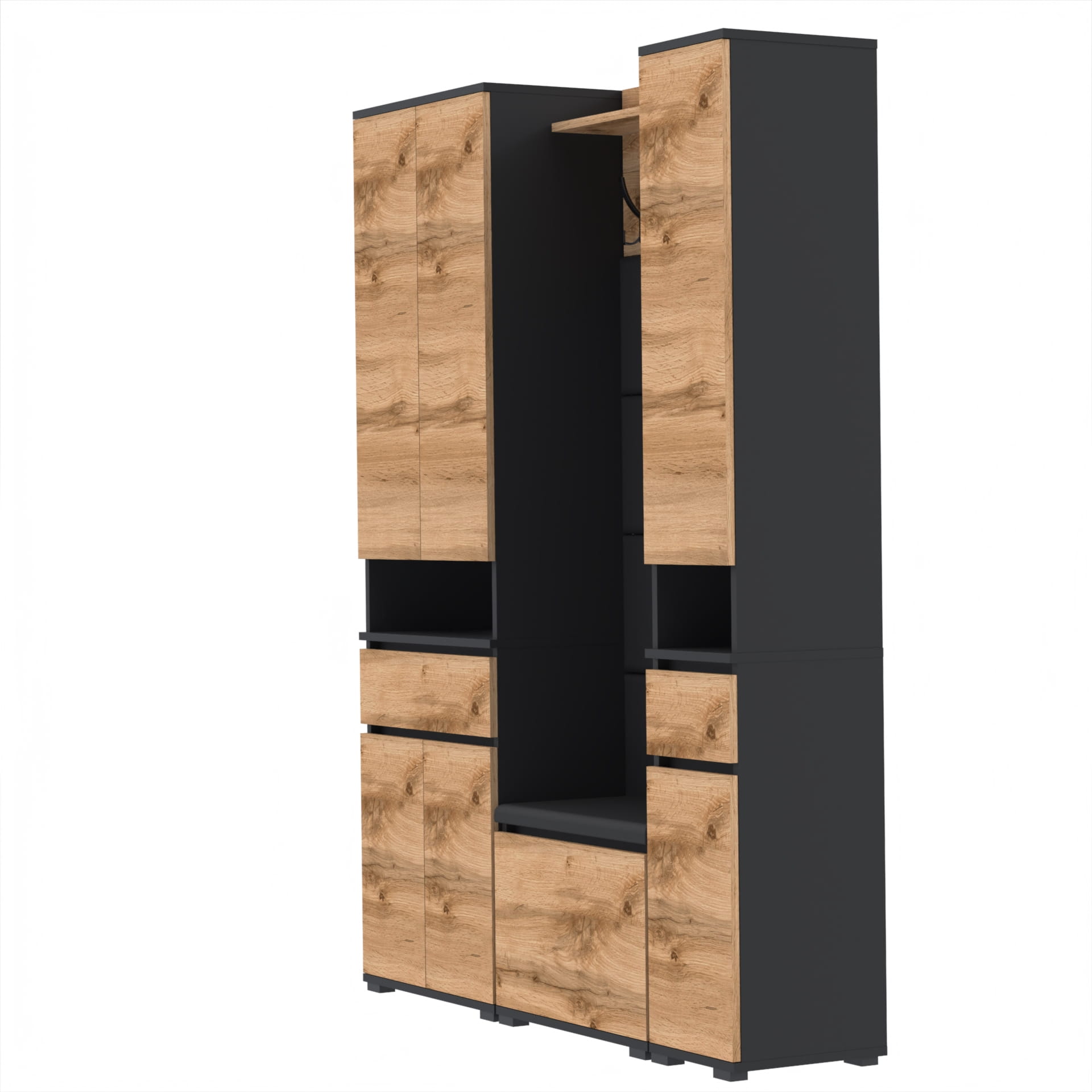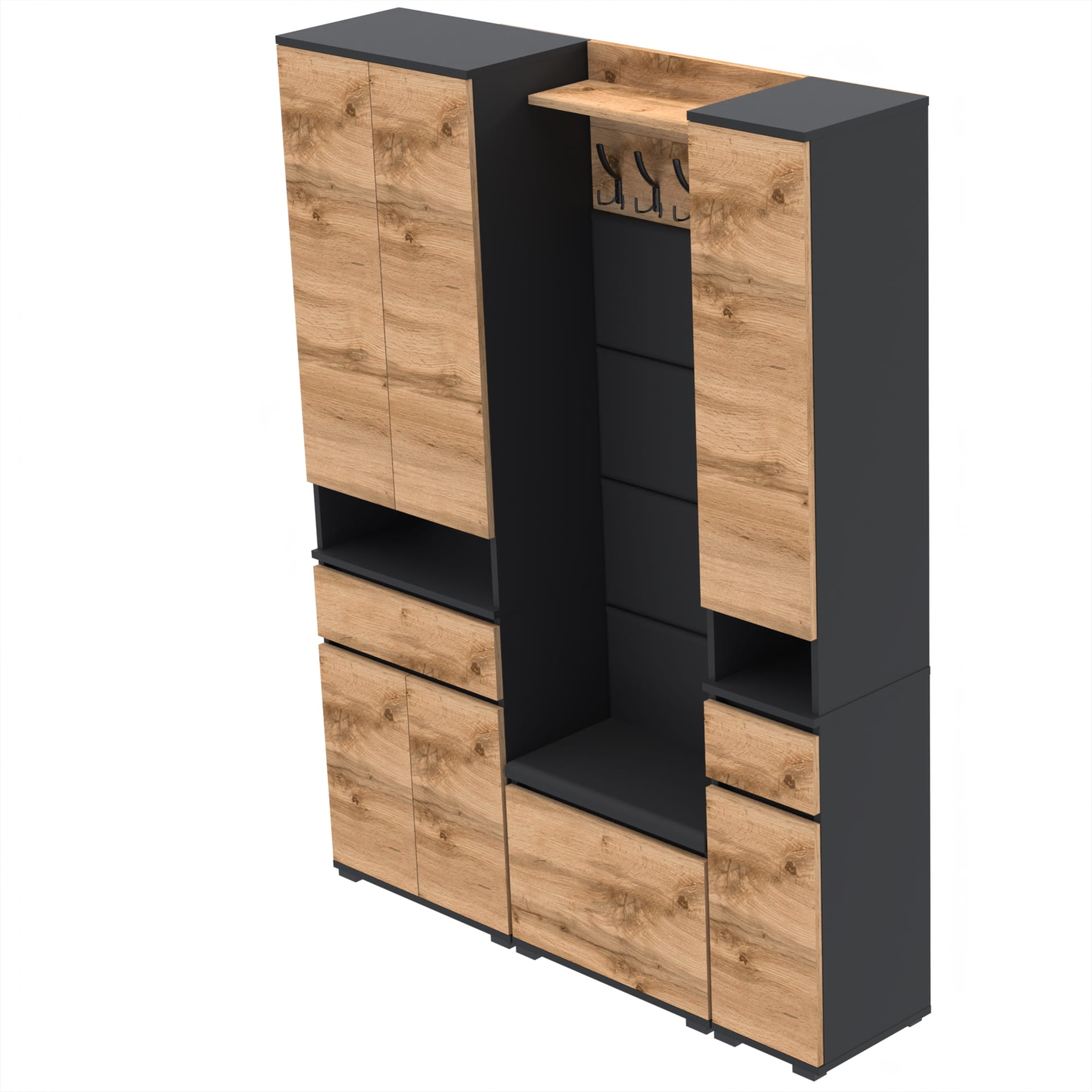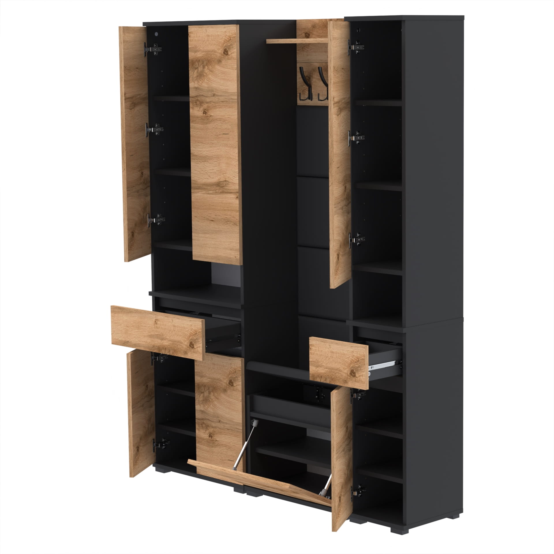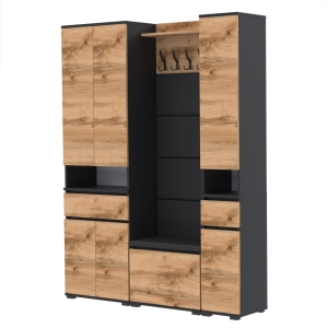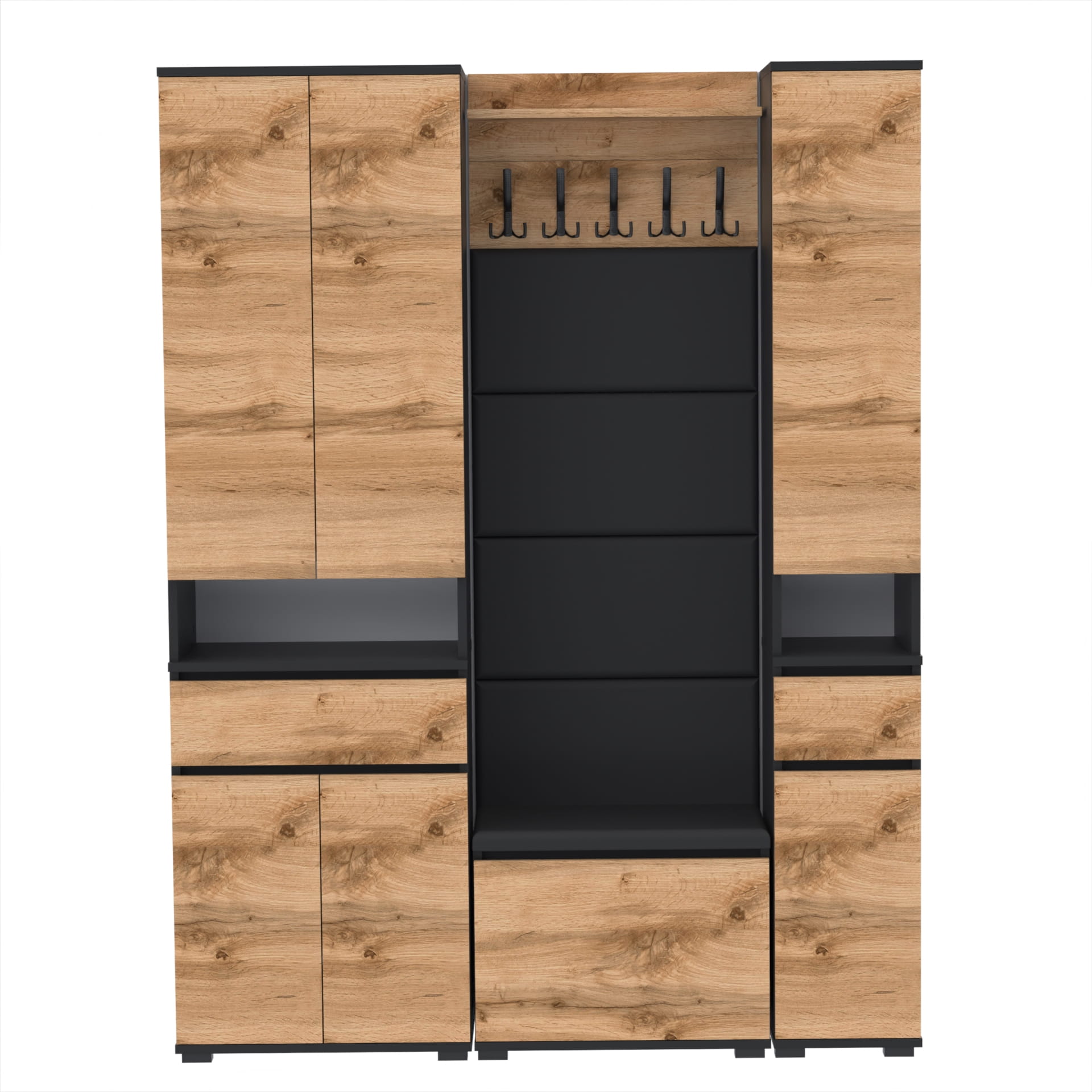 Garderoba to prawdziwy raj dla miłośników elegancji i funkcjonalności. To miejsce, które łączy styl z praktycznością, tworząc harmonijną przestrzeń do przechowywania i organizacji. Centralnym punktem tej garderoby jest szafka na buty z siedziskiem i schowkiem. To miejsce, w którym nie tylko przechowasz swoje ulubione obuwie, ale także znajdziesz wygodne miejsce do zdejmowania i zakładania butów. Schowek pozwoli Ci zachować porządek w garderobie, przechowując drobne przedmioty i akcesoria w jednym miejscu.