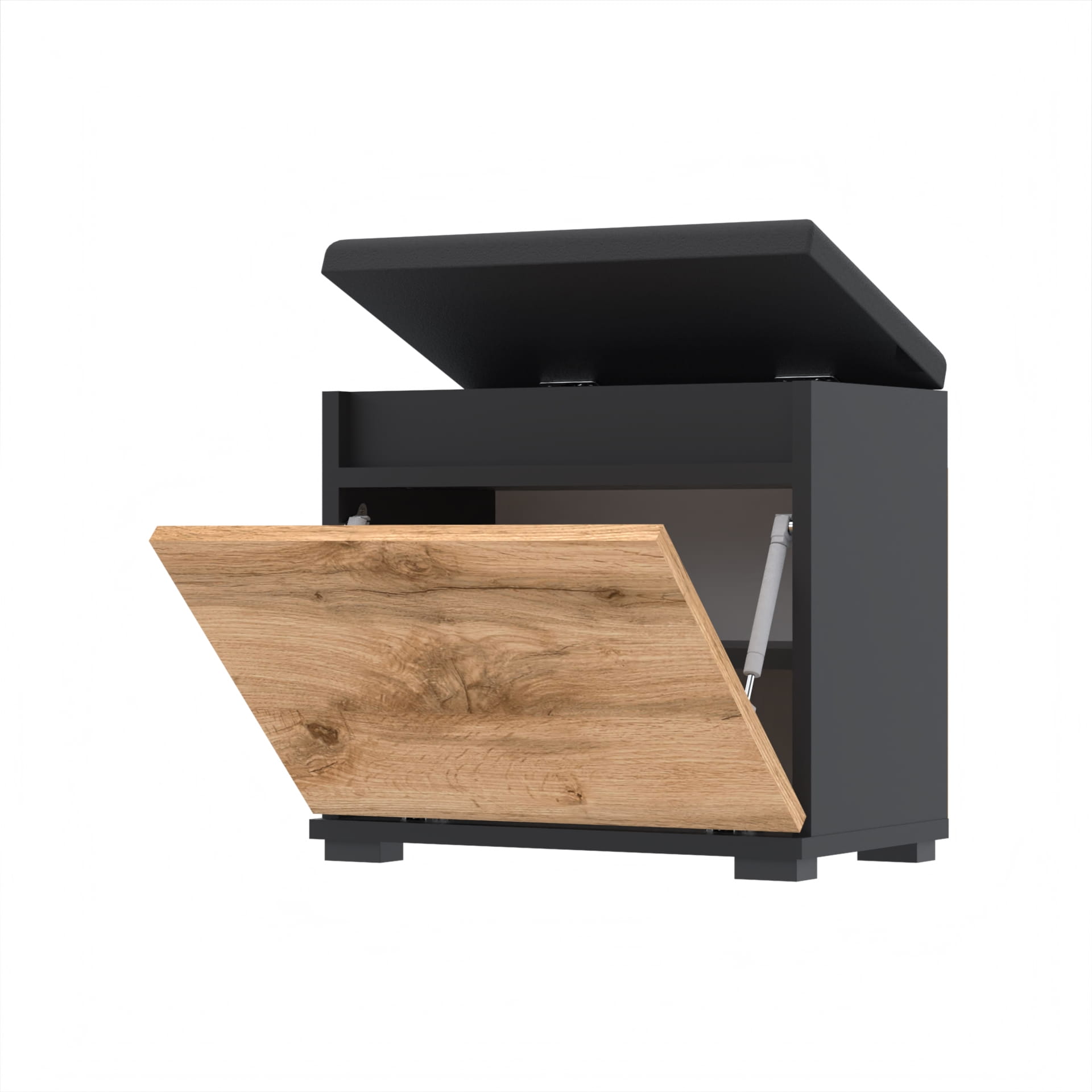 Szafka na buty z siedziskiem to doskonałe połączenie funkcjonalności i wygody. Wyprodukowana w Polsce, doskonale wpasuje się w styl każdego przedpokoju. Siedzisko, obite miękkim, wysokiej jakości materiałem, zapewnia komfort podczas zakładania butów.