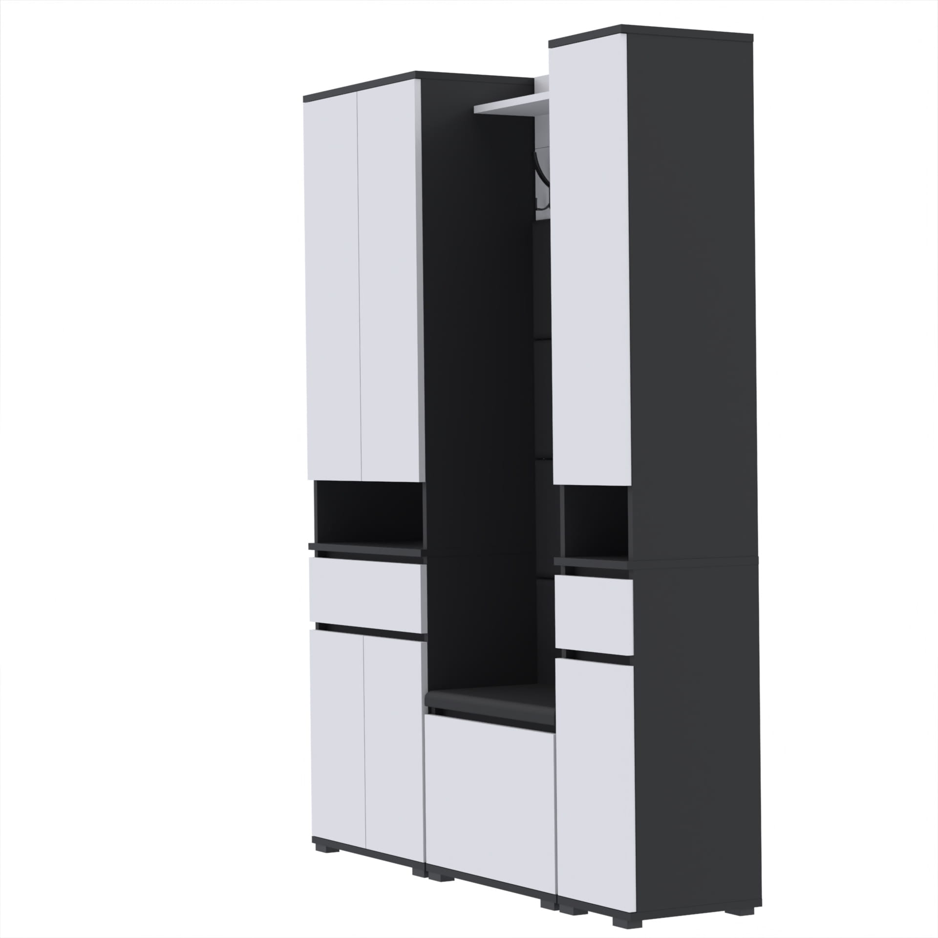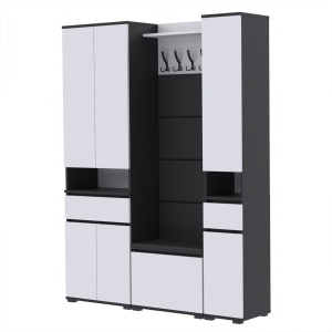 Garderoba to prawdziwy raj dla miłośników elegancji i funkcjonalności. To miejsce, które łączy styl z praktycznością, tworząc harmonijną przestrzeń do przechowywania i organizacji. Centralnym punktem tej garderoby jest szafka na buty z siedziskiem i schowkiem. To miejsce, w którym nie tylko przechowasz swoje ulubione obuwie, ale także znajdziesz wygodne miejsce do zdejmowania i zakładania butów. Schowek pozwoli Ci zachować porządek w garderobie, przechowując drobne przedmioty i akcesoria w jednym miejscu.