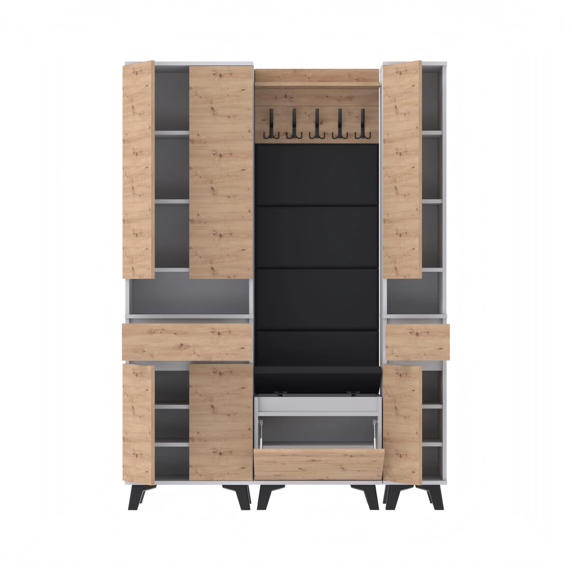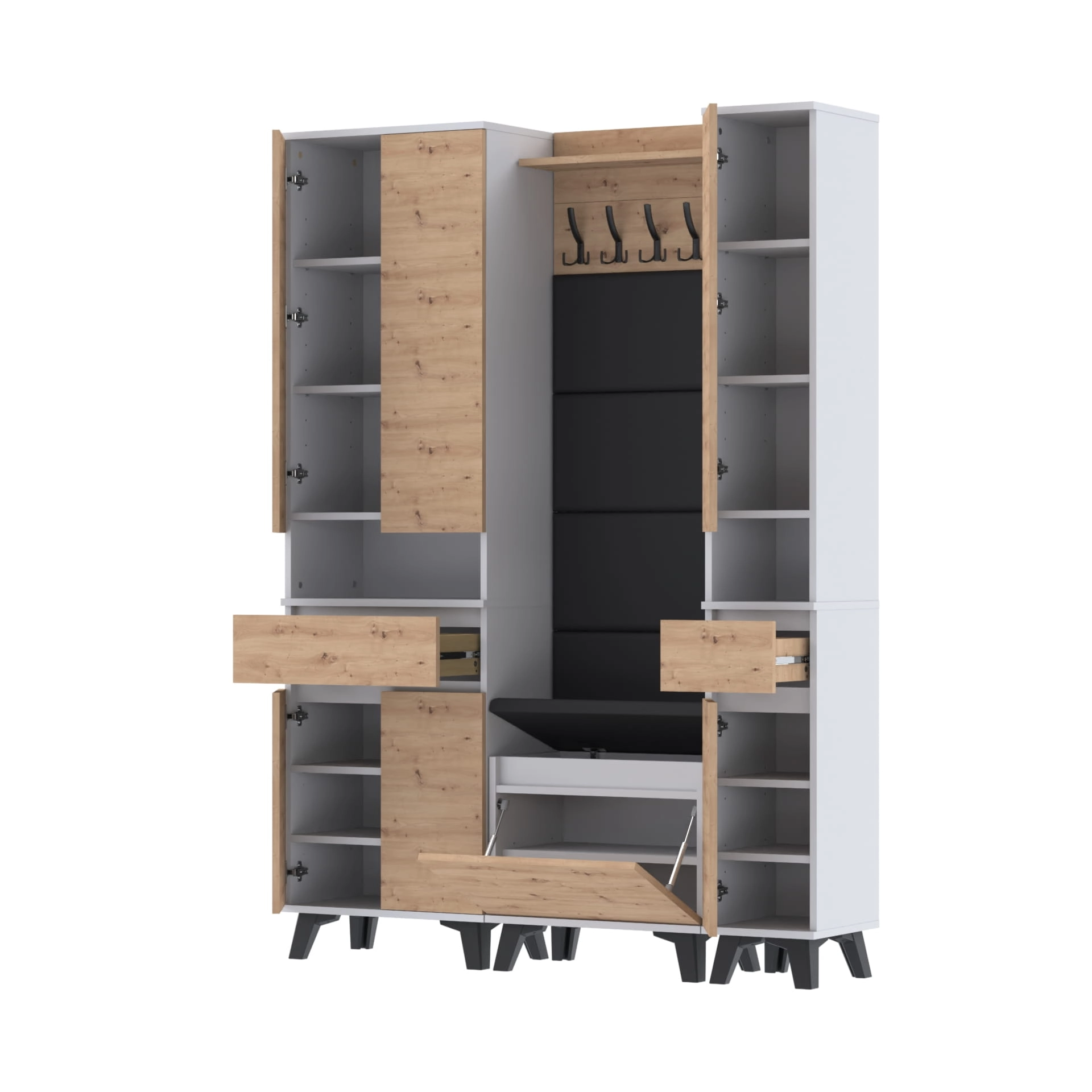Szafka na buty jest nie tylko wygodna, ale także praktyczna - wewnątrz znajduje się półka, która pozwala na przechowywanie większej ilości obuwia. Dodatkowo, szafka jest wyposażona w schowek na przybory, dzięki czemu wszystko, czego potrzebujesz, jest zawsze pod ręką.