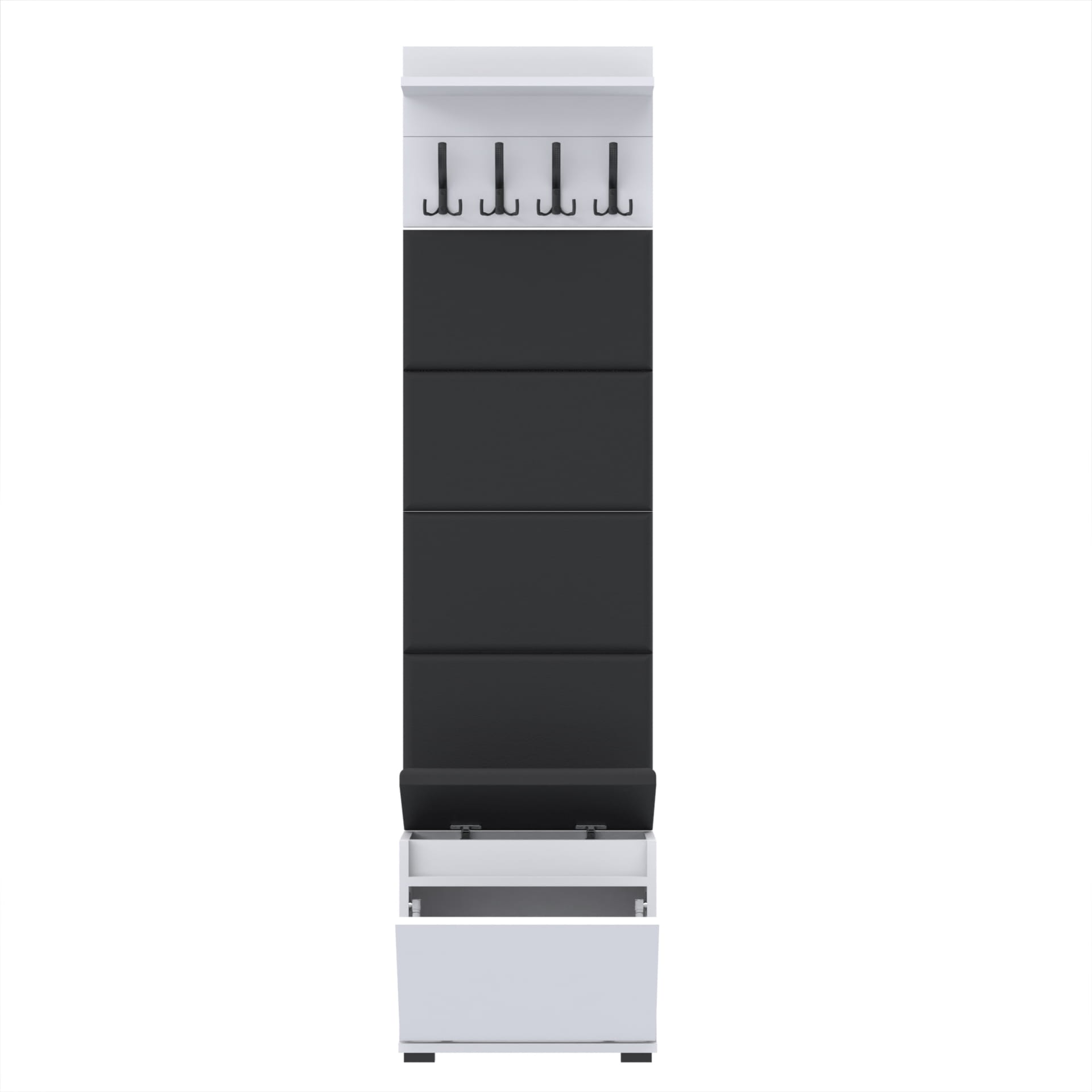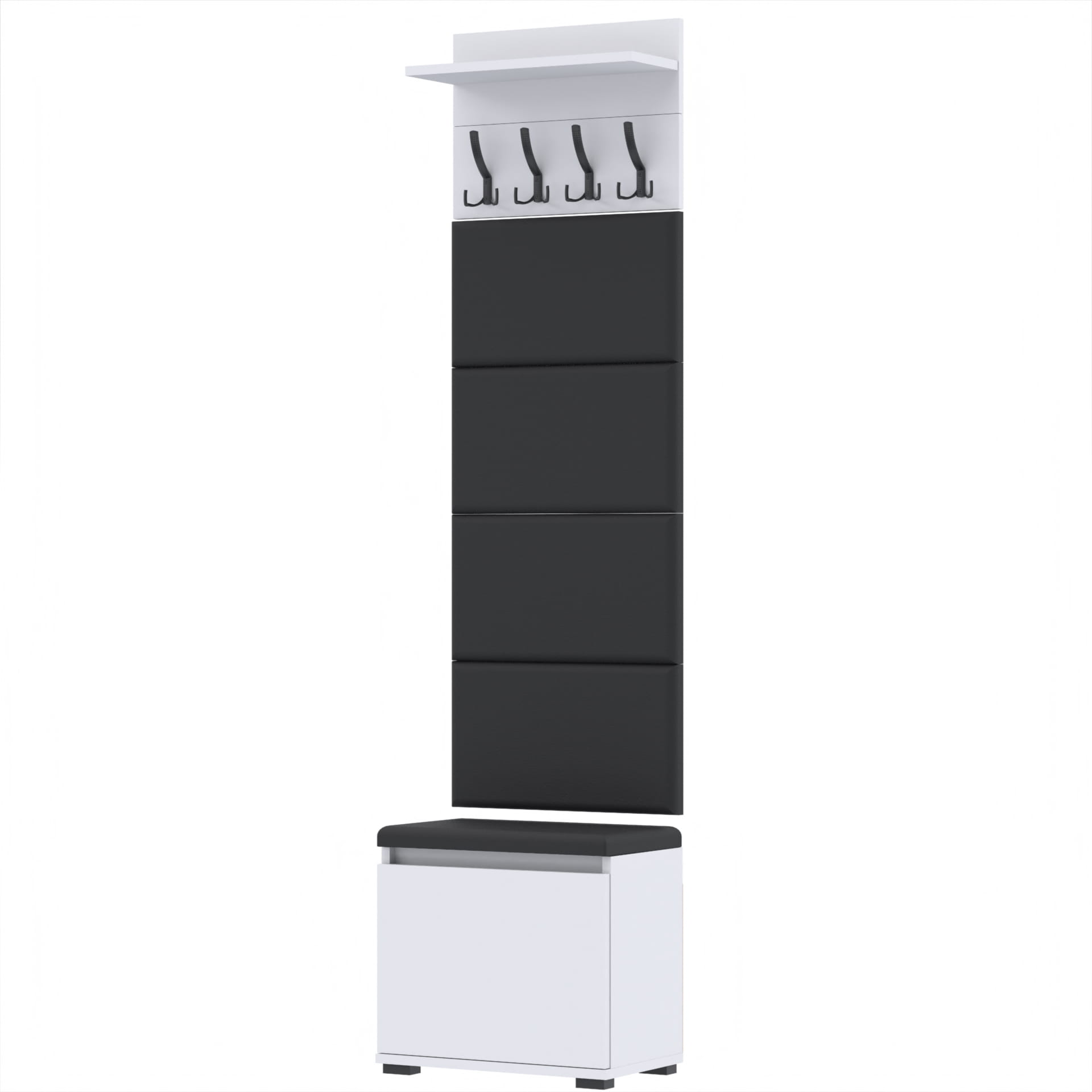 Zestaw - szafka na buty ze schowkiem, wieszak ścienny, półka, 4 panele tapicerowane.