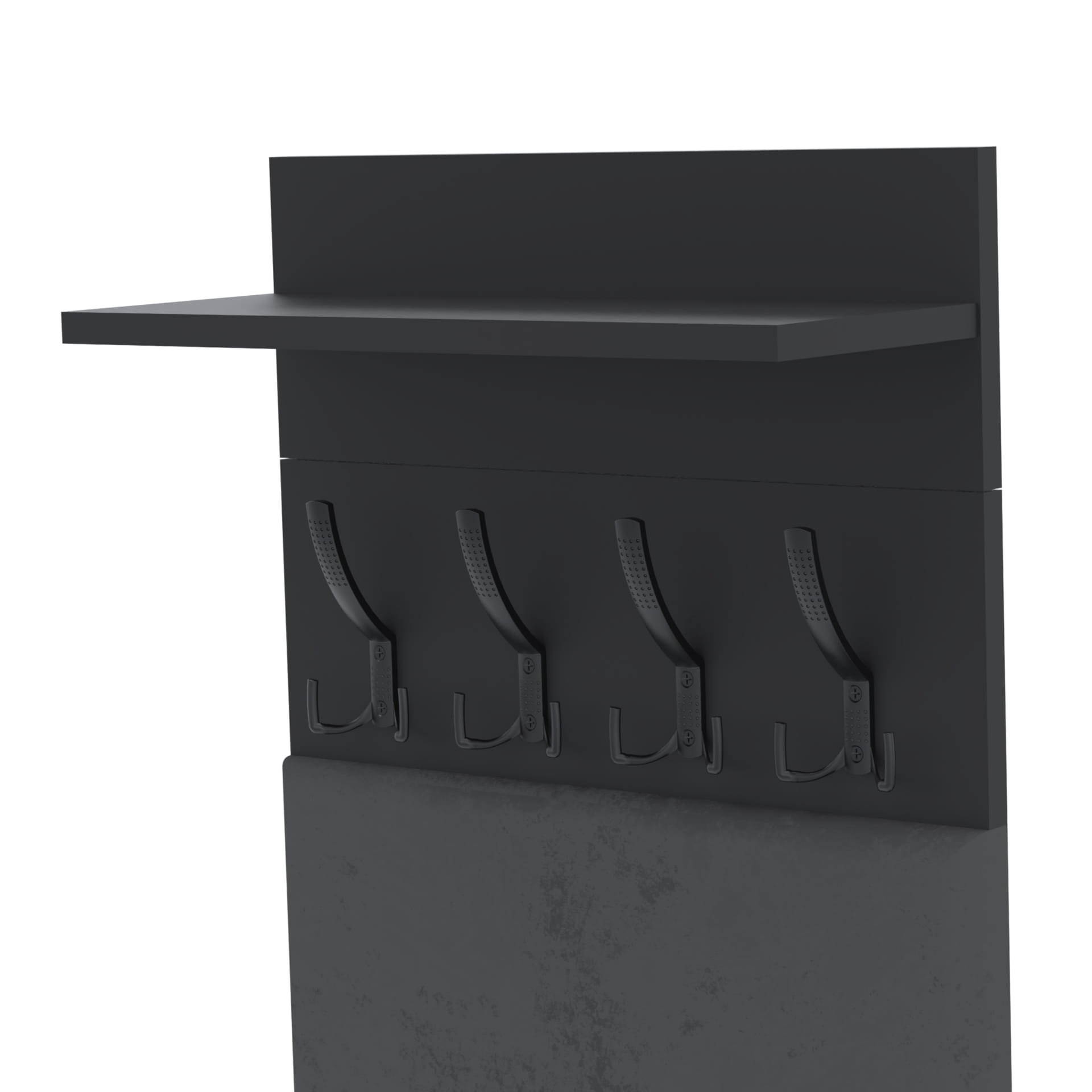 Wieszak składa się z 2 części: wieszak i półka. Płyta tylna wieszaka oraz półki mają po 18cm wysokości.