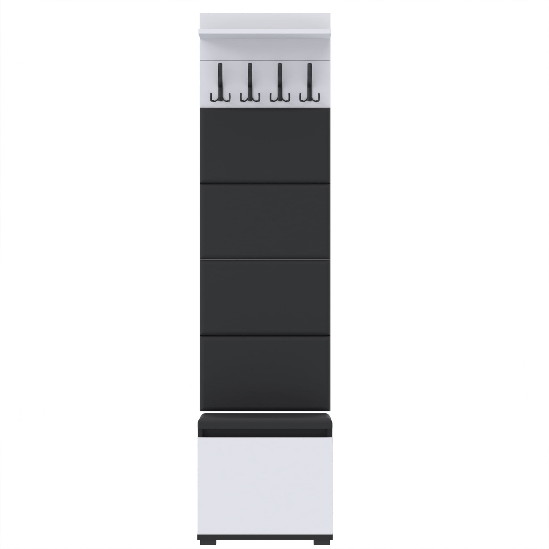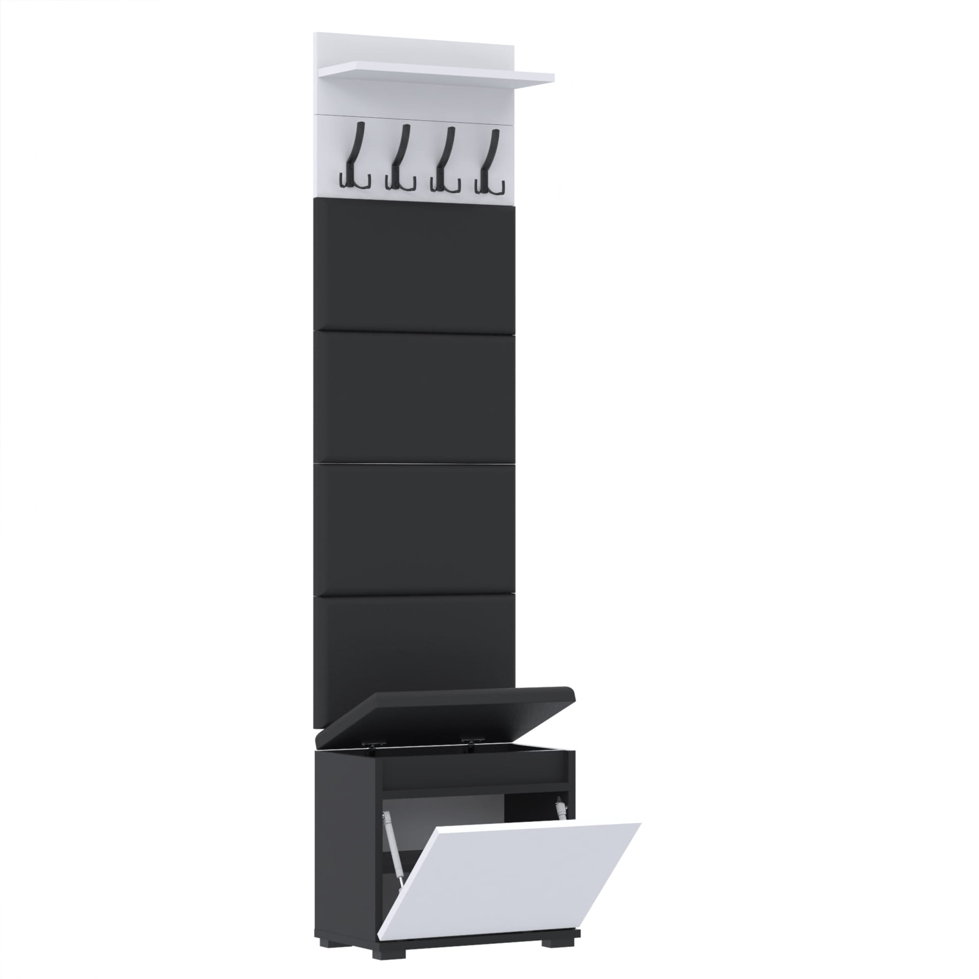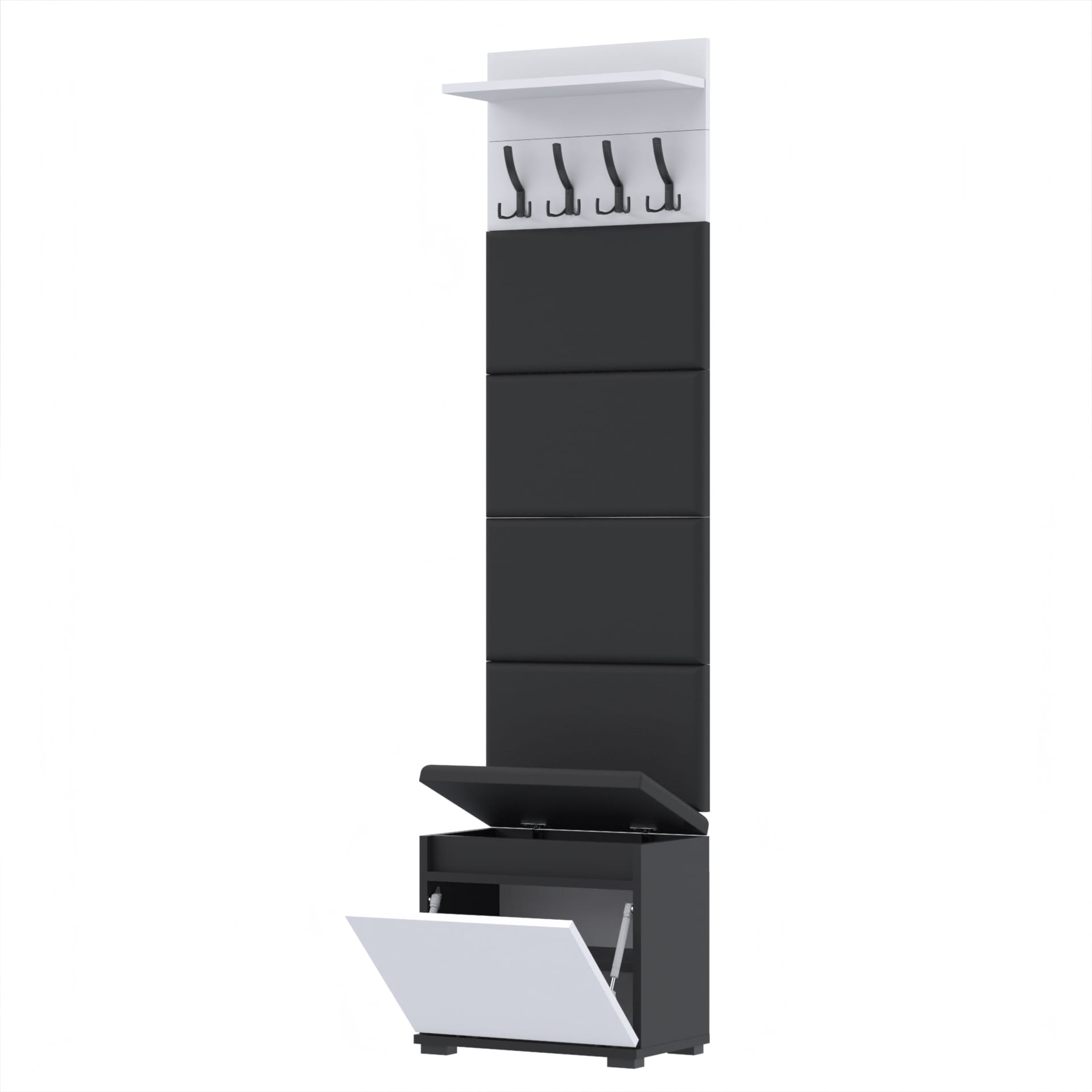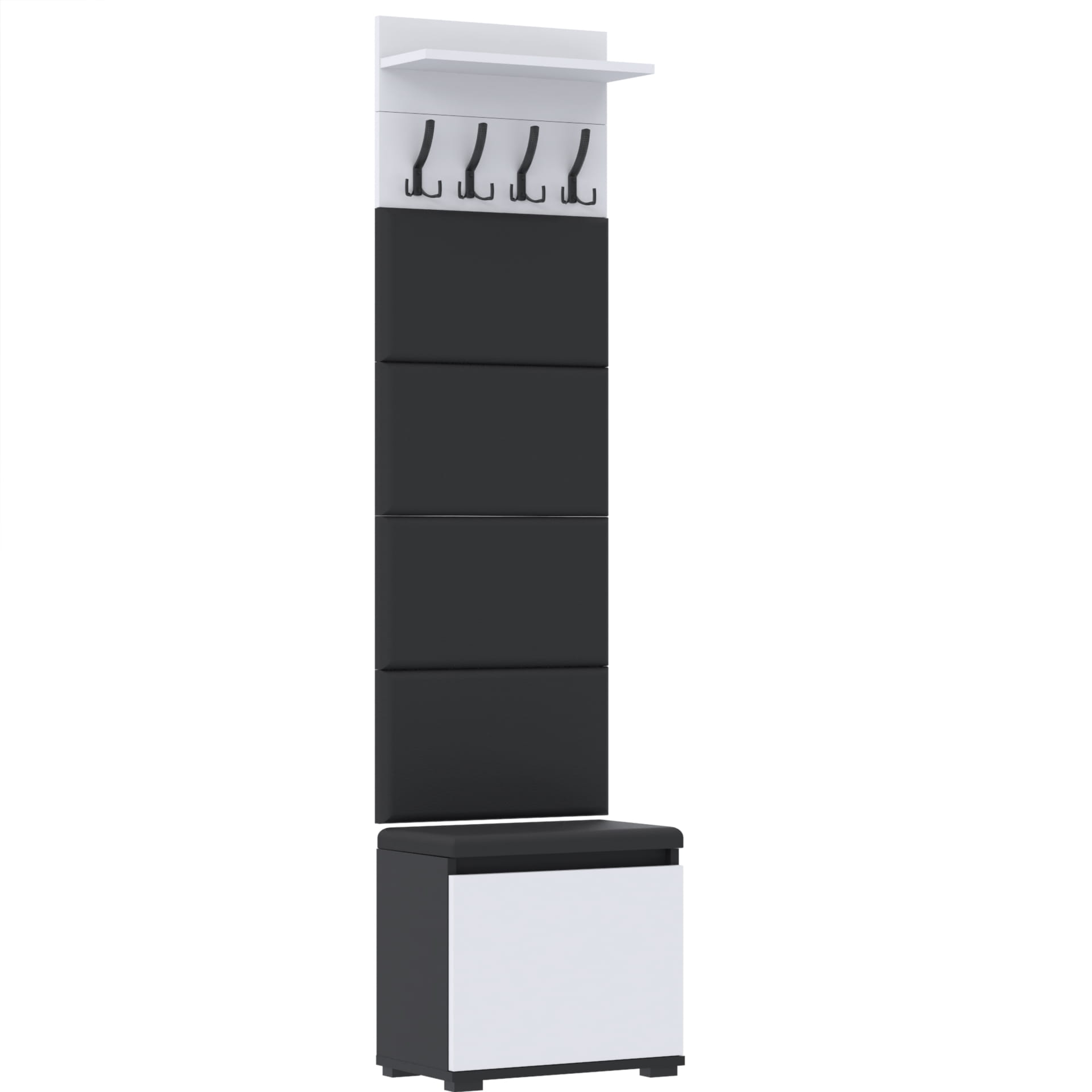 Zestaw - szafka na buty ze schowkiem, wieszak ścienny, półka, 4 panele tapicerowane.