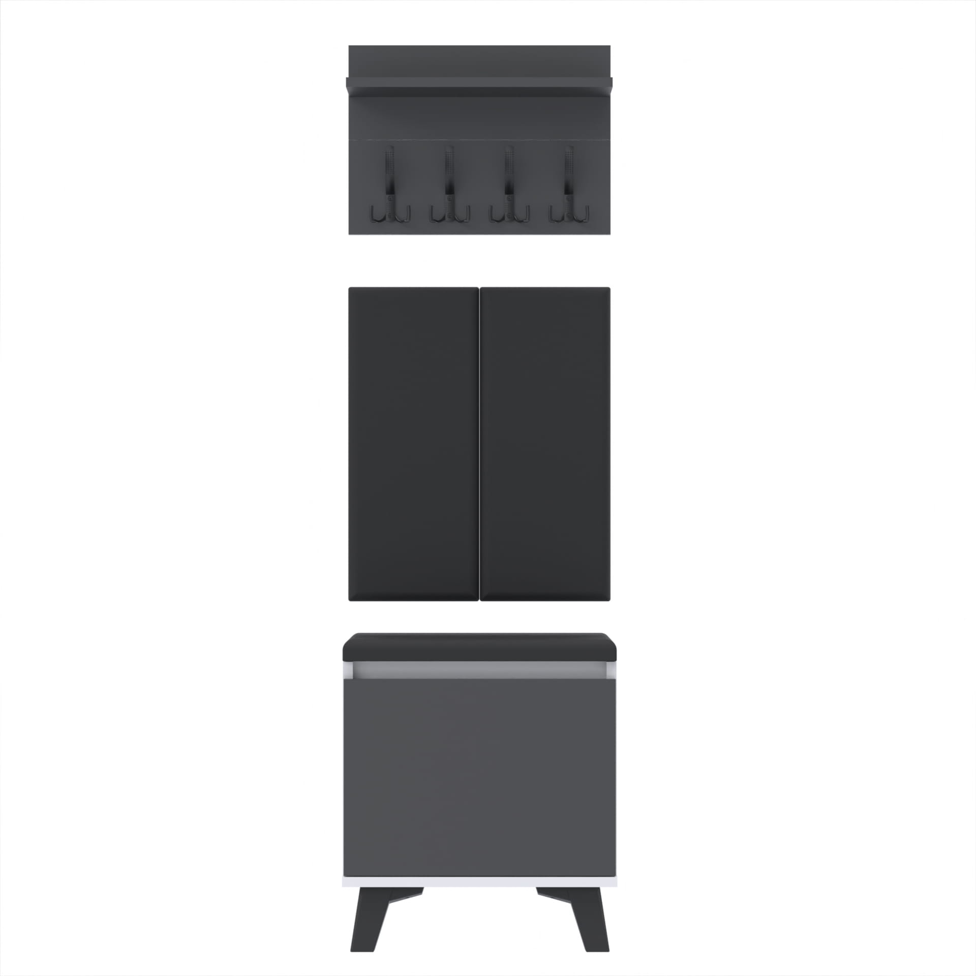 Garderoba to stylowy i praktyczny obszar w naszych domach. Kluczowym elementem jest szafka na buty z siedziskiem i schowkiem, która ułatwia organizację obuwia oraz drobnych akcesoriów. Tapicerowane panele na ścianach dodają wnętrzu ciepłego, eleganckiego charakteru. Przemyślane dopełnienie stanowi praktyczny wieszak ścienny, doskonały do przechowywania odzieży wierzchniej.