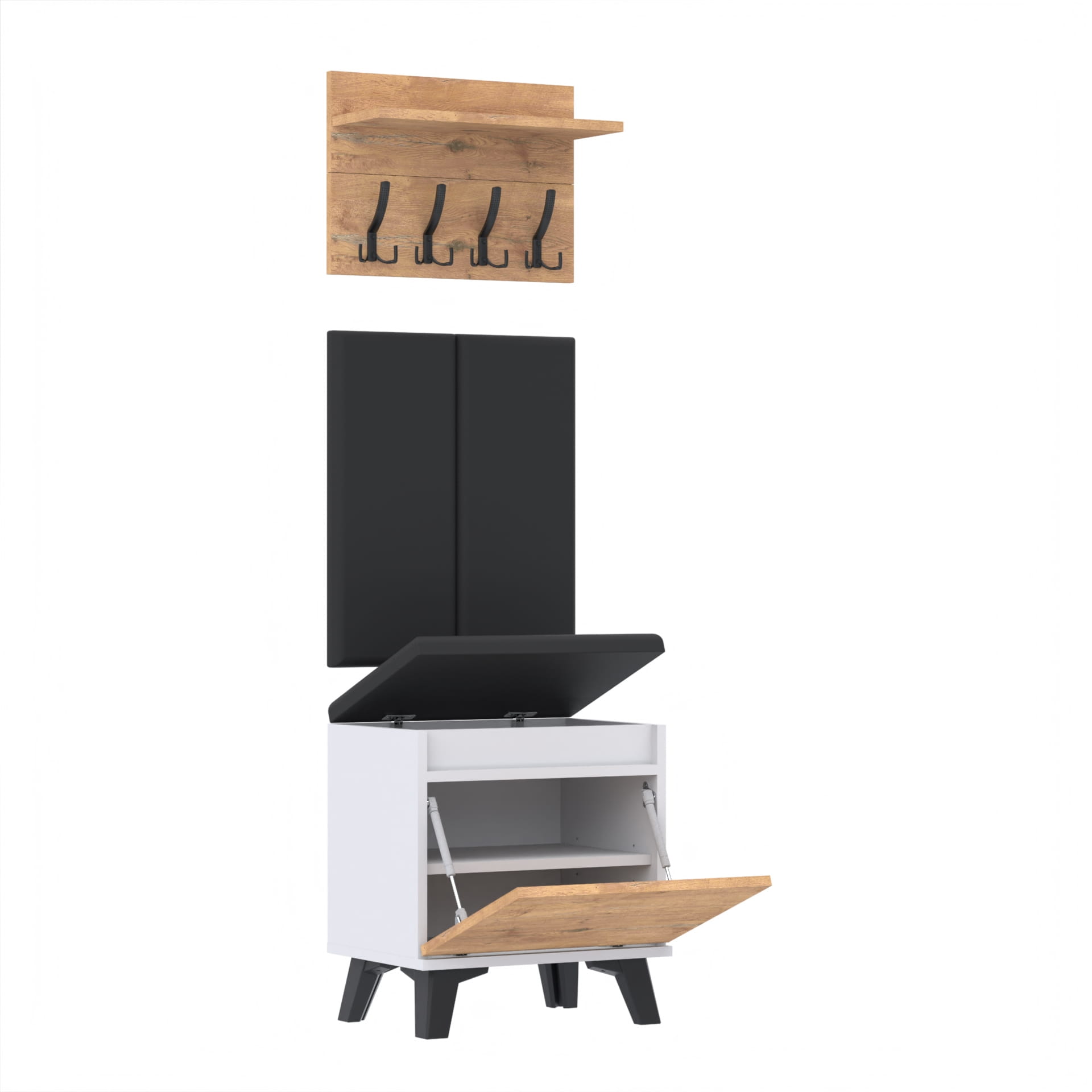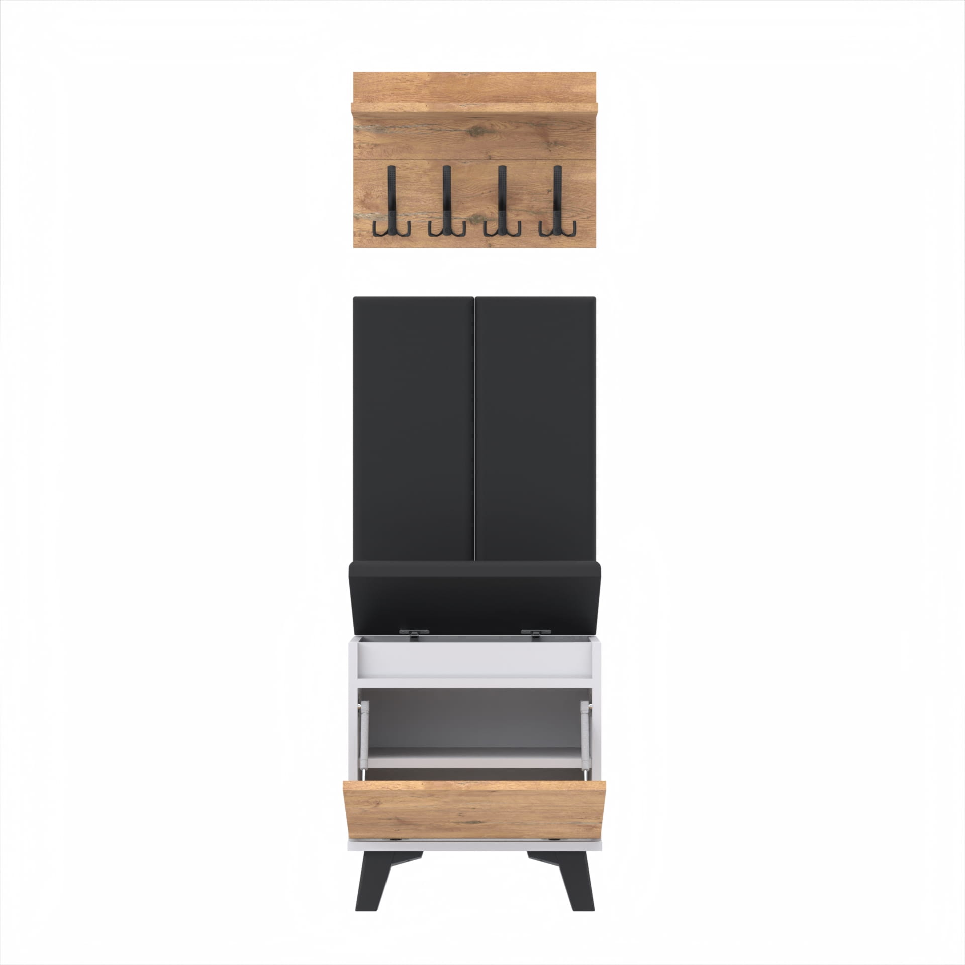 Szafka na buty jest nie tylko wygodna, ale także praktyczna - wewnątrz znajduje się półka, która pozwala na przechowywanie większej ilości obuwia. Dodatkowo, szafka jest wyposażona w schowek na przybory, dzięki czemu wszystko, czego potrzebujesz, jest zawsze pod ręką.