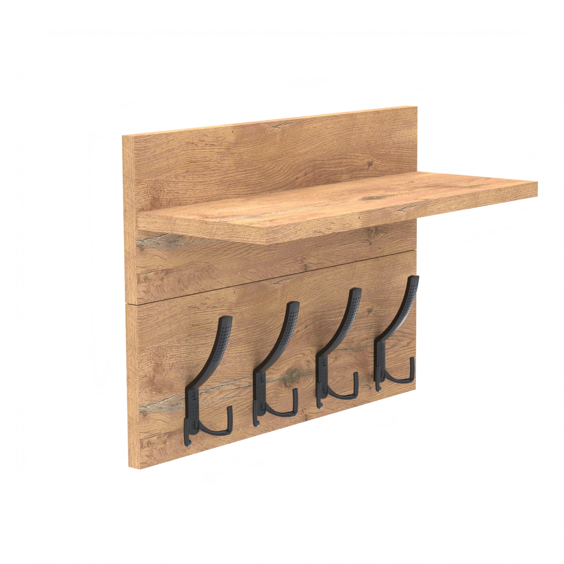 Wieszak składa się z 2 części: wieszak i półka. Płyta tylna wieszaka oraz półki mają po 18cm wysokości.