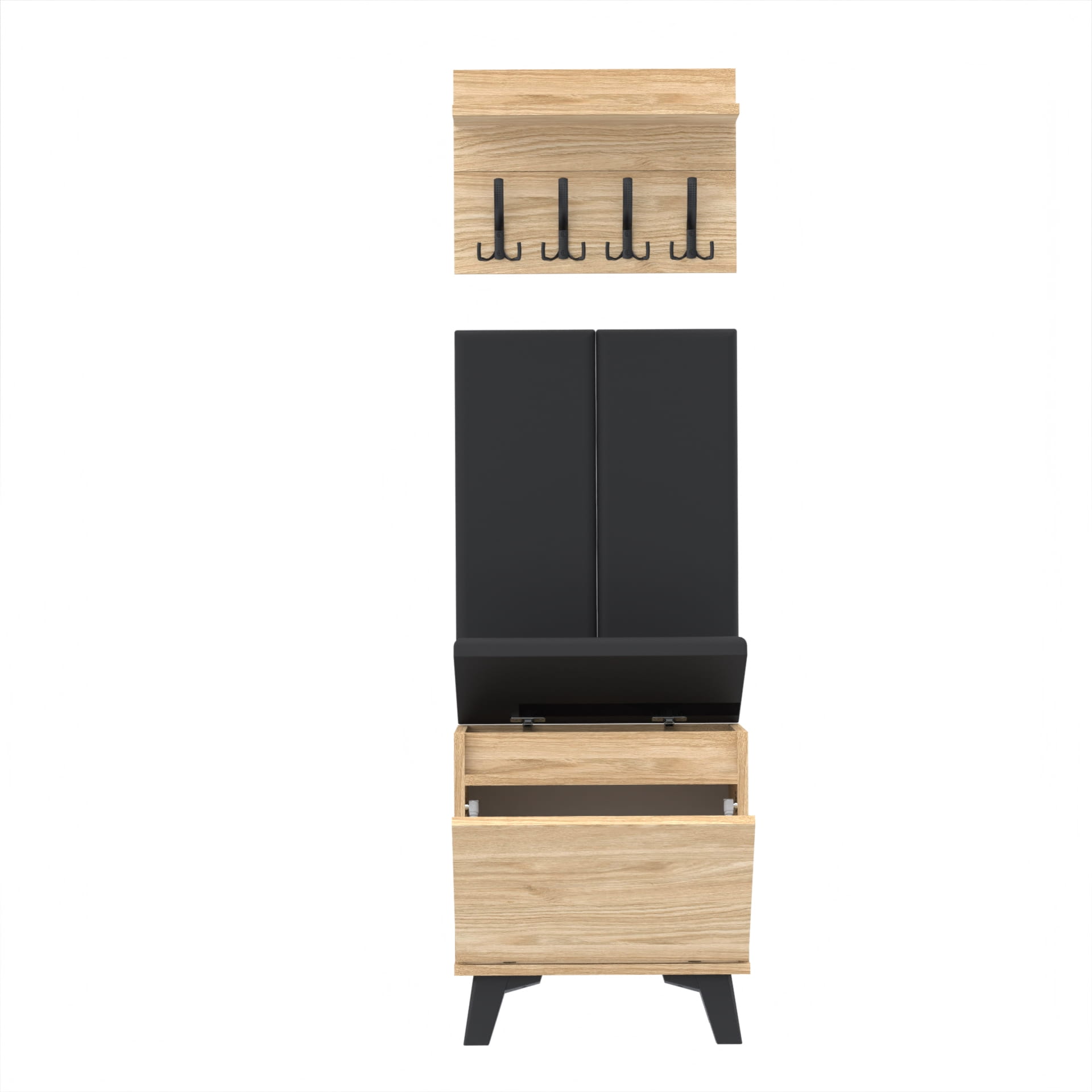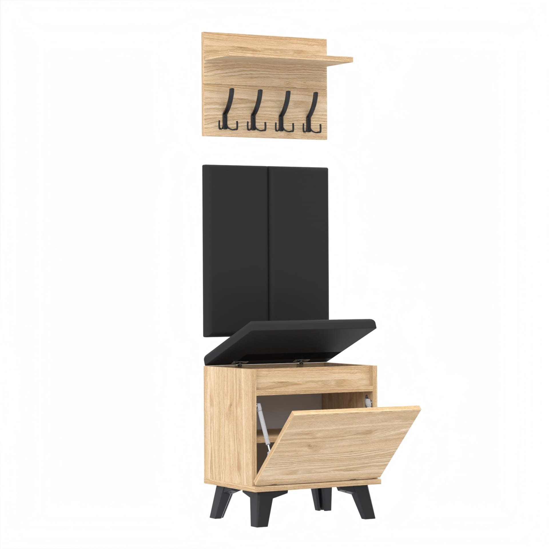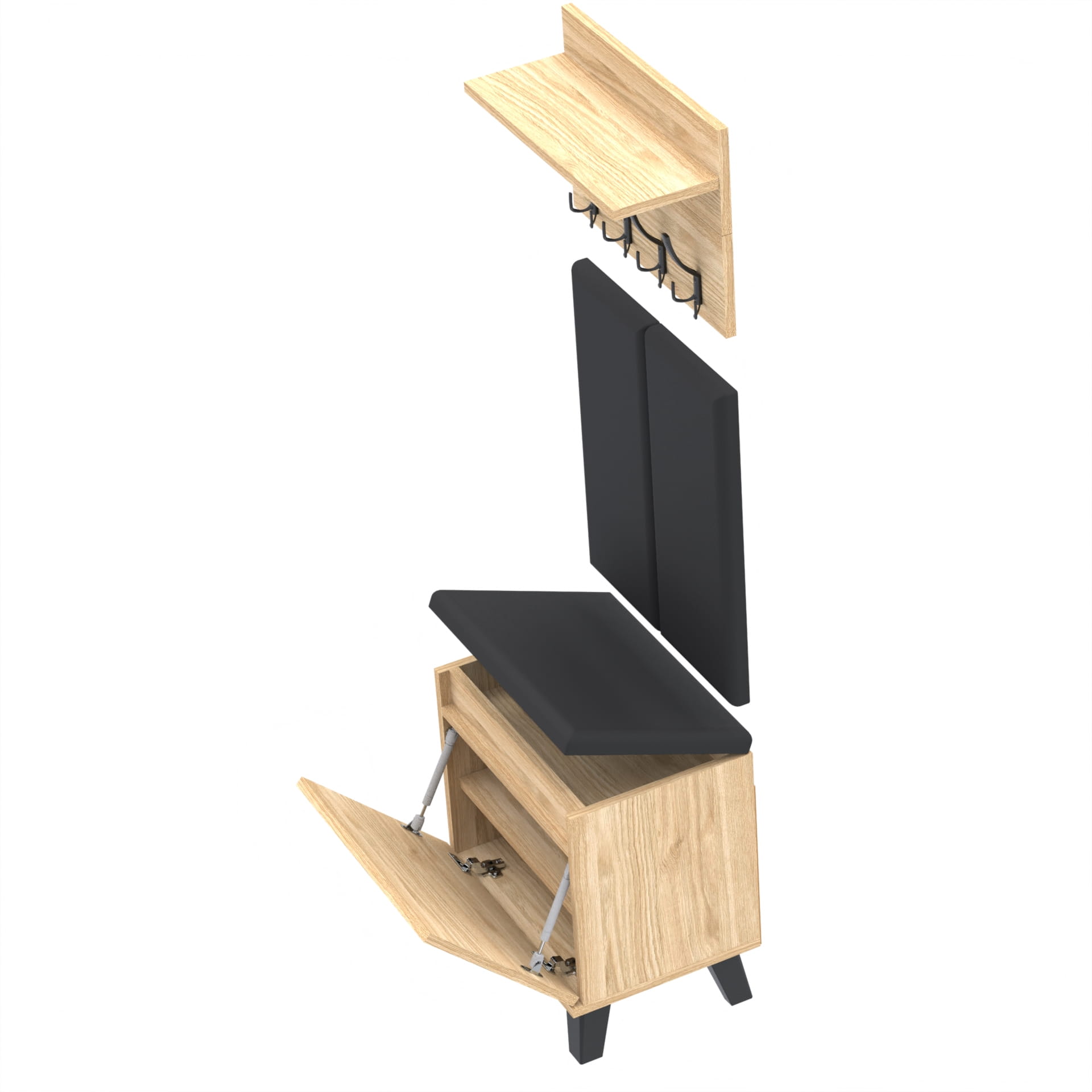 Szafka na buty jest nie tylko wygodna, ale także praktyczna - wewnątrz znajduje się półka, która pozwala na przechowywanie większej ilości obuwia. Dodatkowo, szafka jest wyposażona w schowek na przybory, dzięki czemu wszystko, czego potrzebujesz, jest zawsze pod ręką.