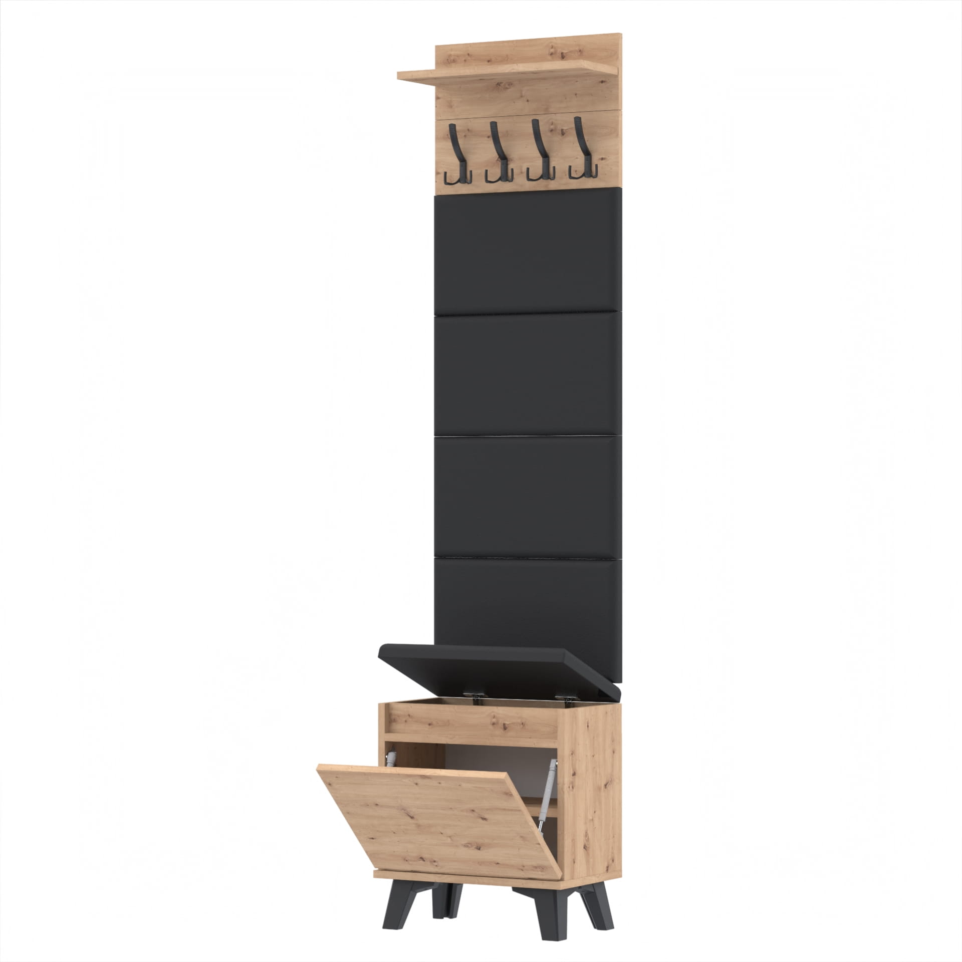 Szafka na buty jest nie tylko wygodna, ale także praktyczna - wewnątrz znajduje się półka, która pozwala na przechowywanie większej ilości obuwia. Dodatkowo, szafka jest wyposażona w schowek na przybory, dzięki czemu wszystko, czego potrzebujesz, jest zawsze pod ręką.