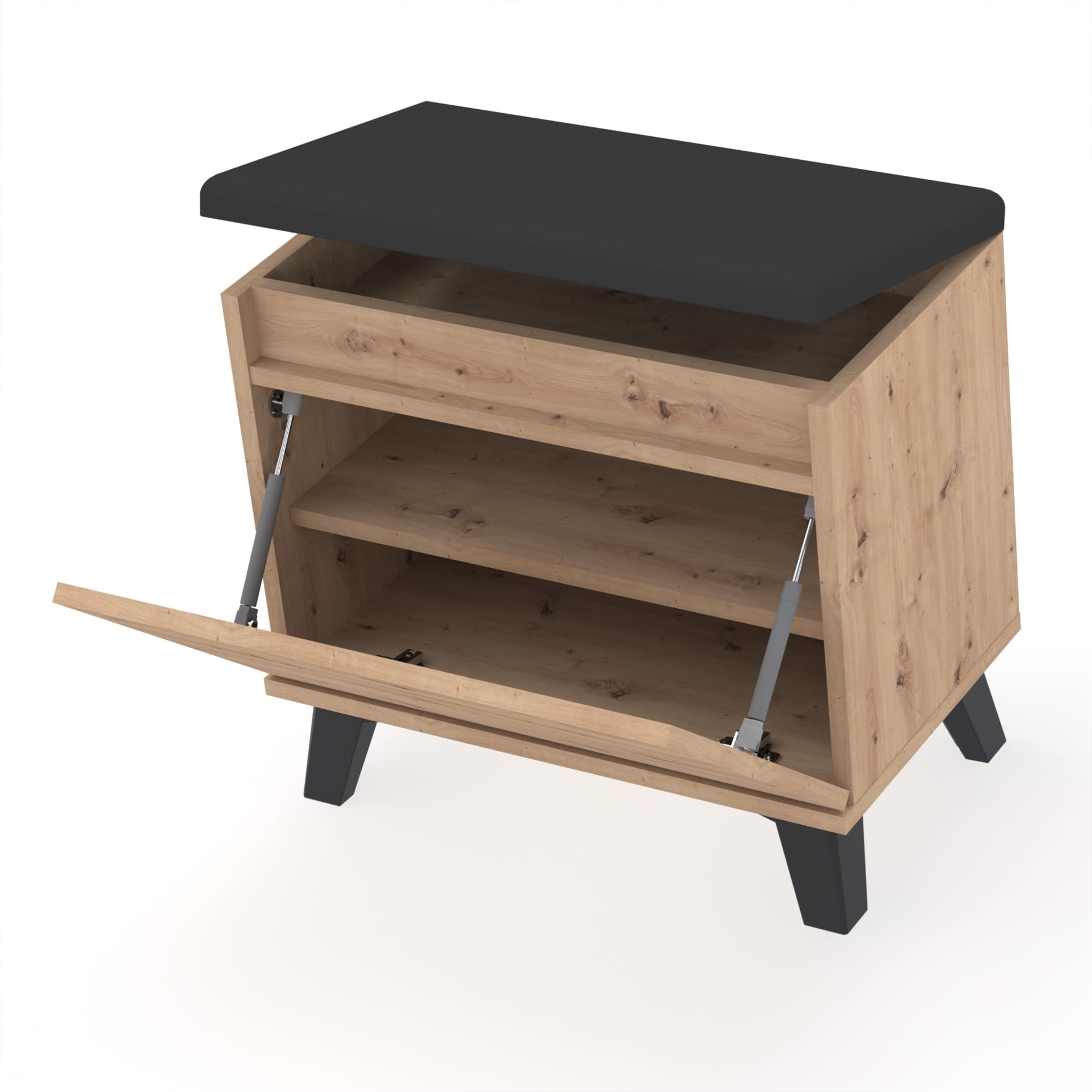Szafka na buty z siedziskiem to doskonałe połączenie funkcjonalności i wygody. Wyprodukowana w Polsce, doskonale wpasuje się w styl każdego przedpokoju. Siedzisko, obite miękkim, wysokiej jakości materiałem, zapewnia komfort podczas zakładania butów.