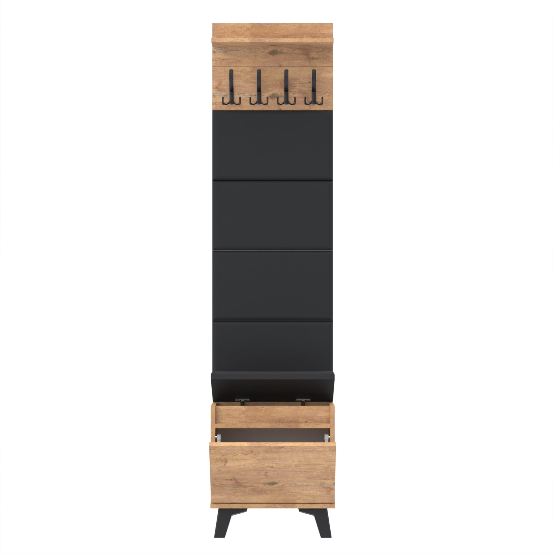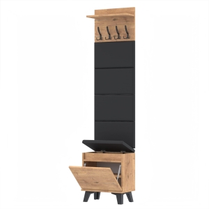 Szafka na buty jest nie tylko wygodna, ale także praktyczna - wewnątrz znajduje się półka, która pozwala na przechowywanie większej ilości obuwia. Dodatkowo, szafka jest wyposażona w schowek na przybory, dzięki czemu wszystko, czego potrzebujesz, jest zawsze pod ręką.