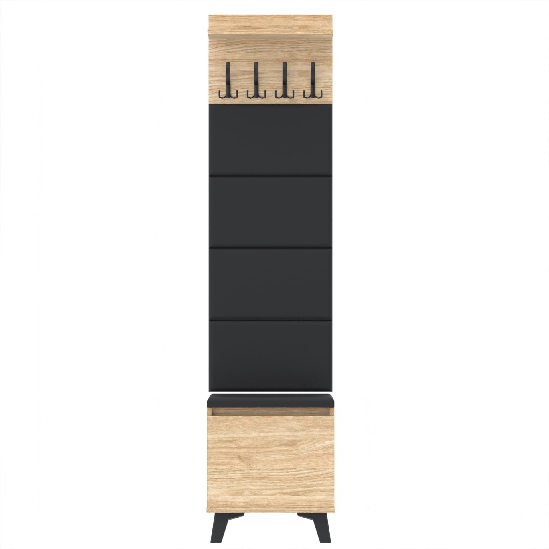 Szafka na buty jest nie tylko wygodna, ale także praktyczna - wewnątrz znajduje się półka, która pozwala na przechowywanie większej ilości obuwia. Dodatkowo, szafka jest wyposażona w schowek na przybory, dzięki czemu wszystko, czego potrzebujesz, jest zawsze pod ręką.