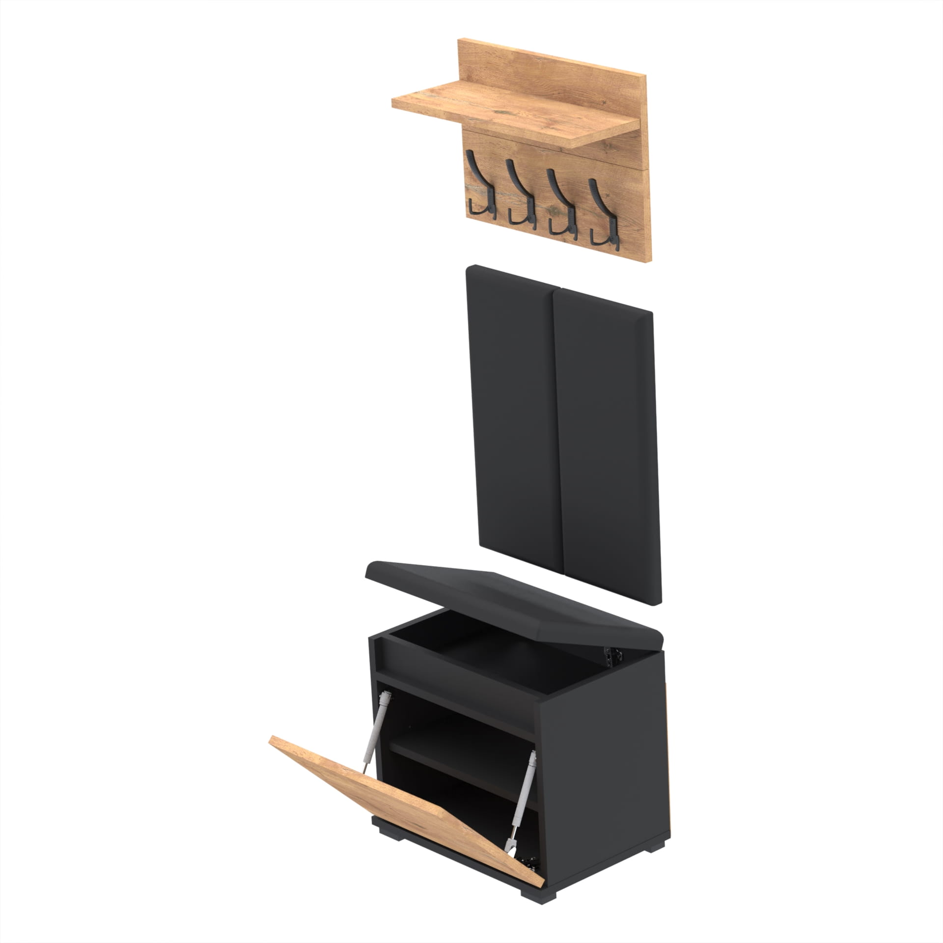 Garderoba 50x36P2WPB szafka na buty wieszak Czarny Lancelot