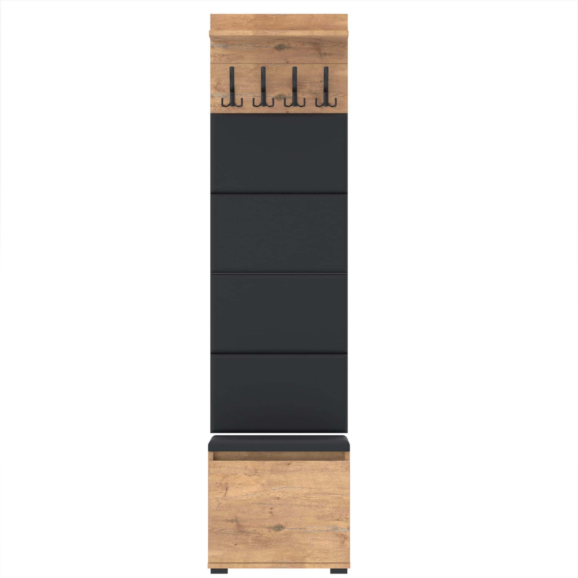 Zestaw - szafka na buty ze schowkiem, wieszak ścienny, półka, 4 panele tapicerowane.