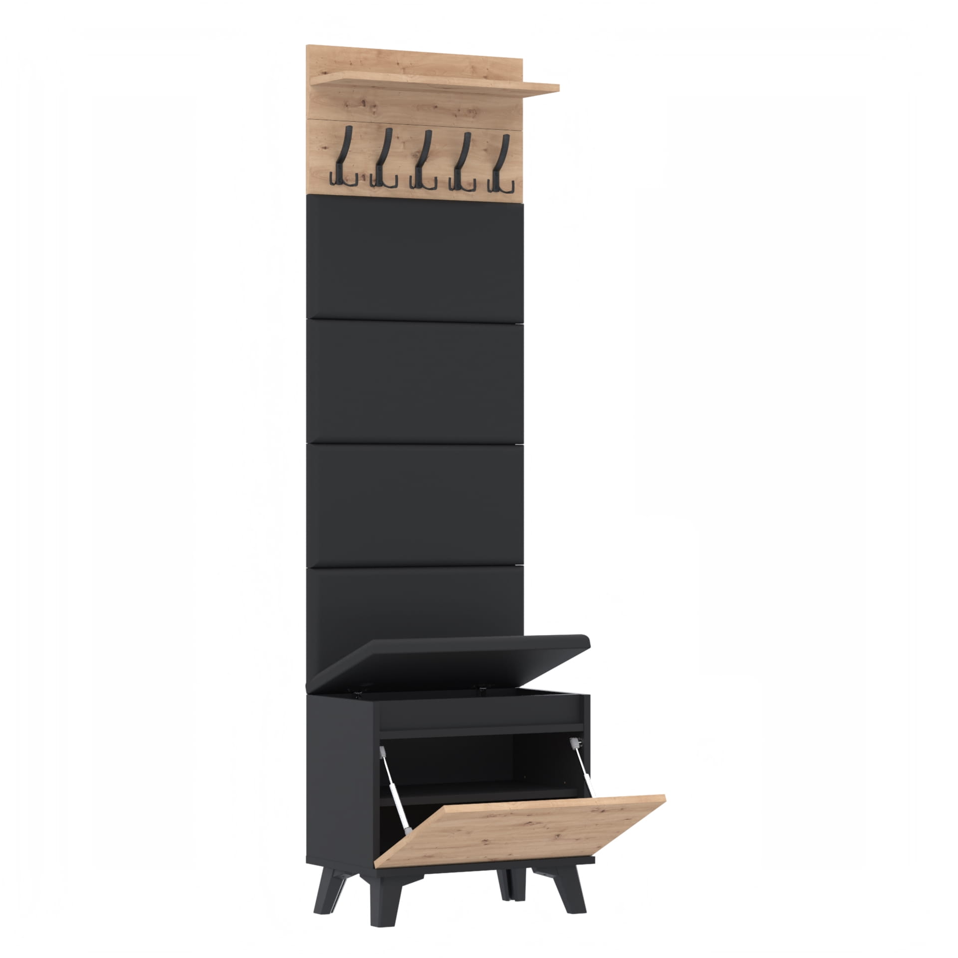 Garderoba 60x30D1-4PAN szafka na buty wieszak panele CZARNY-ARTISAN