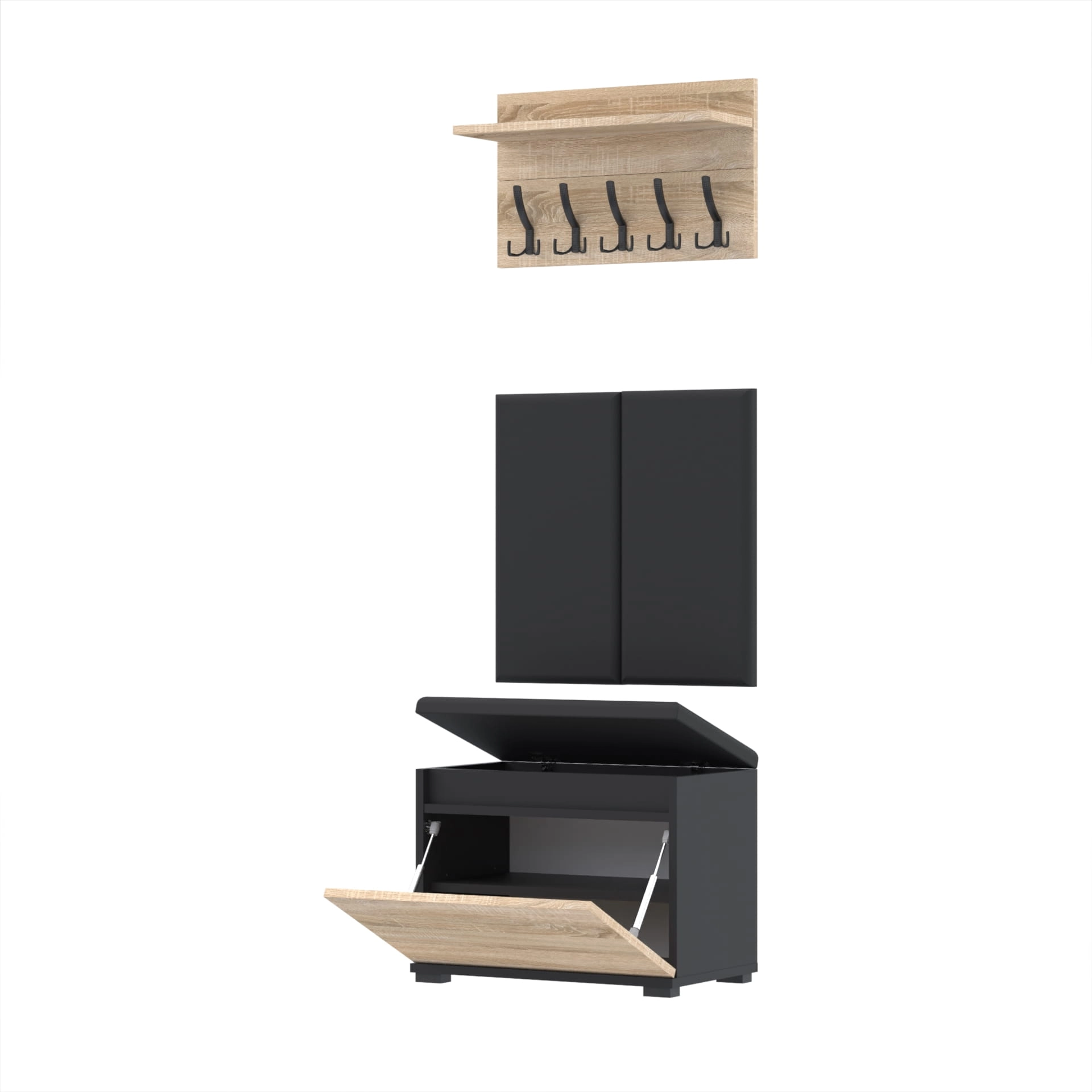 Garderoba 60x30D1N1 P2WP szafka na buty wieszak CZARNY SONOMA