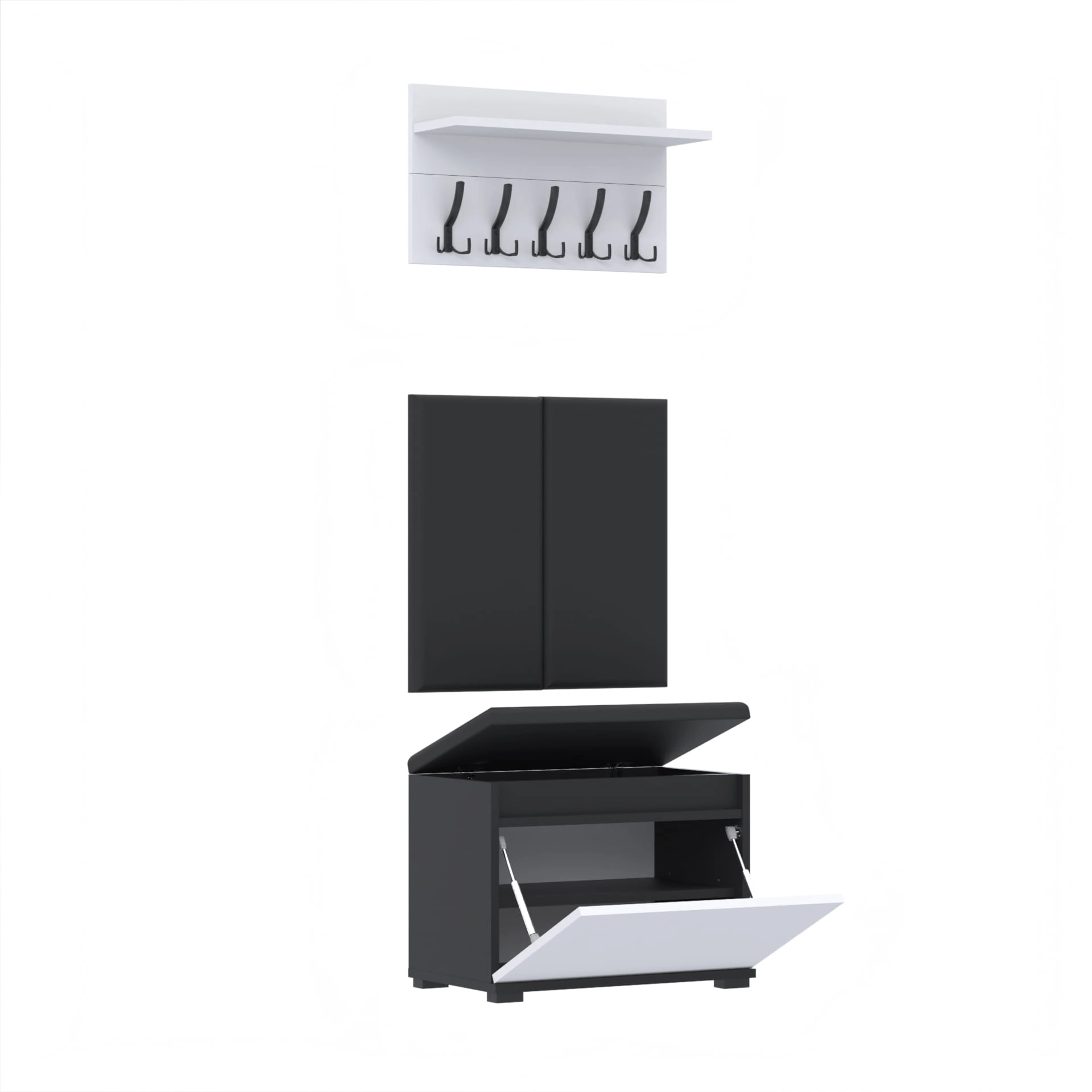 Garderoba 60x36D1N1 P2WP szafka na buty wieszak CZARNY BIAŁY