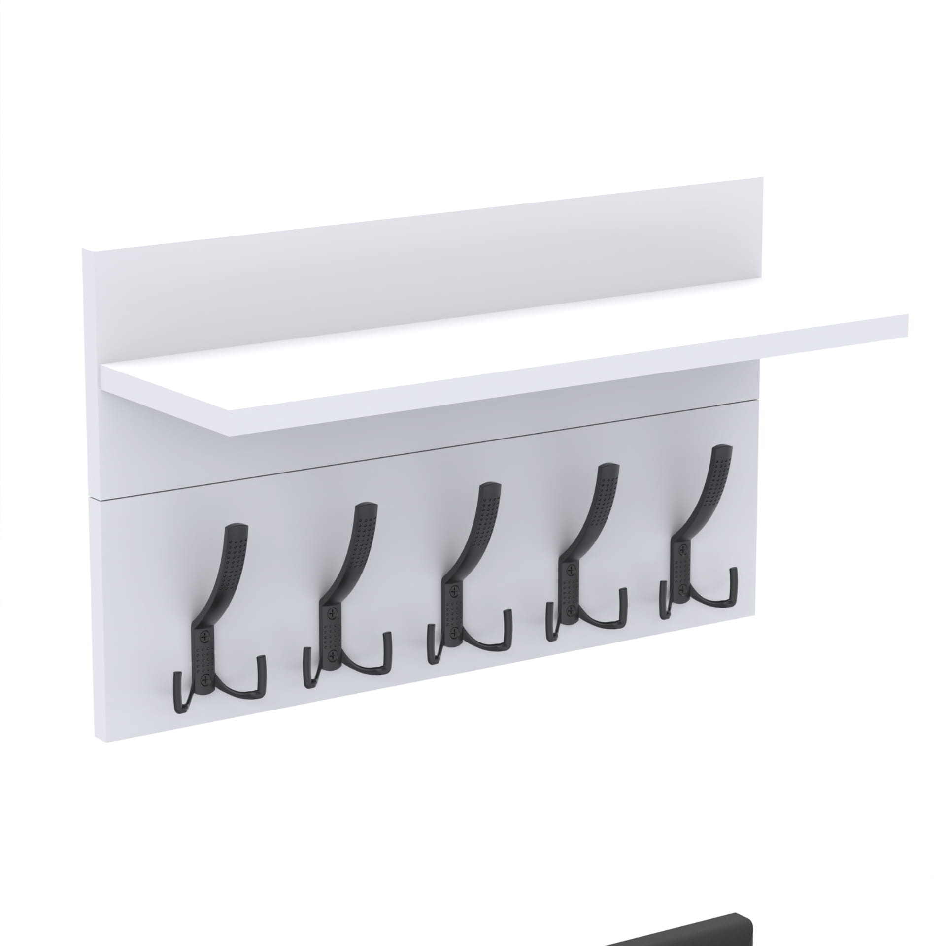 Wieszak składa się z 2 części: wieszak i półka. Płyta tylna wieszaka oraz półki mają po 18cm wysokości.
