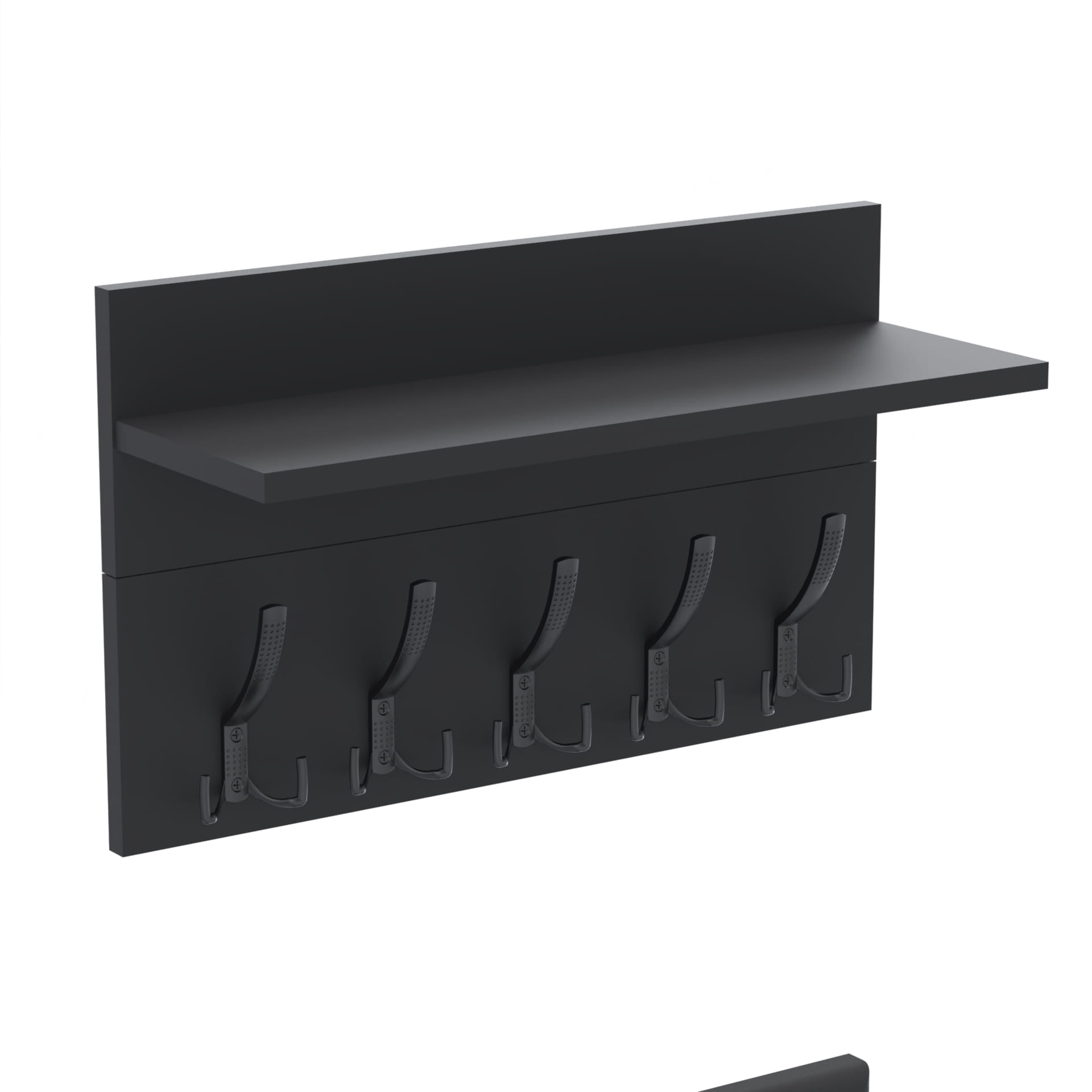 Na górze struktury znajduje się praktyczna półka o głębokości 18 cm, która jest idealna do przechowywania różnych przedmiotów. Półka nie tylko zapewnia dodatkową przestrzeń do przechowywania, ale także stanowi integralną część designu wieszaka, nadając mu ciekawy, nowoczesny wygląd.