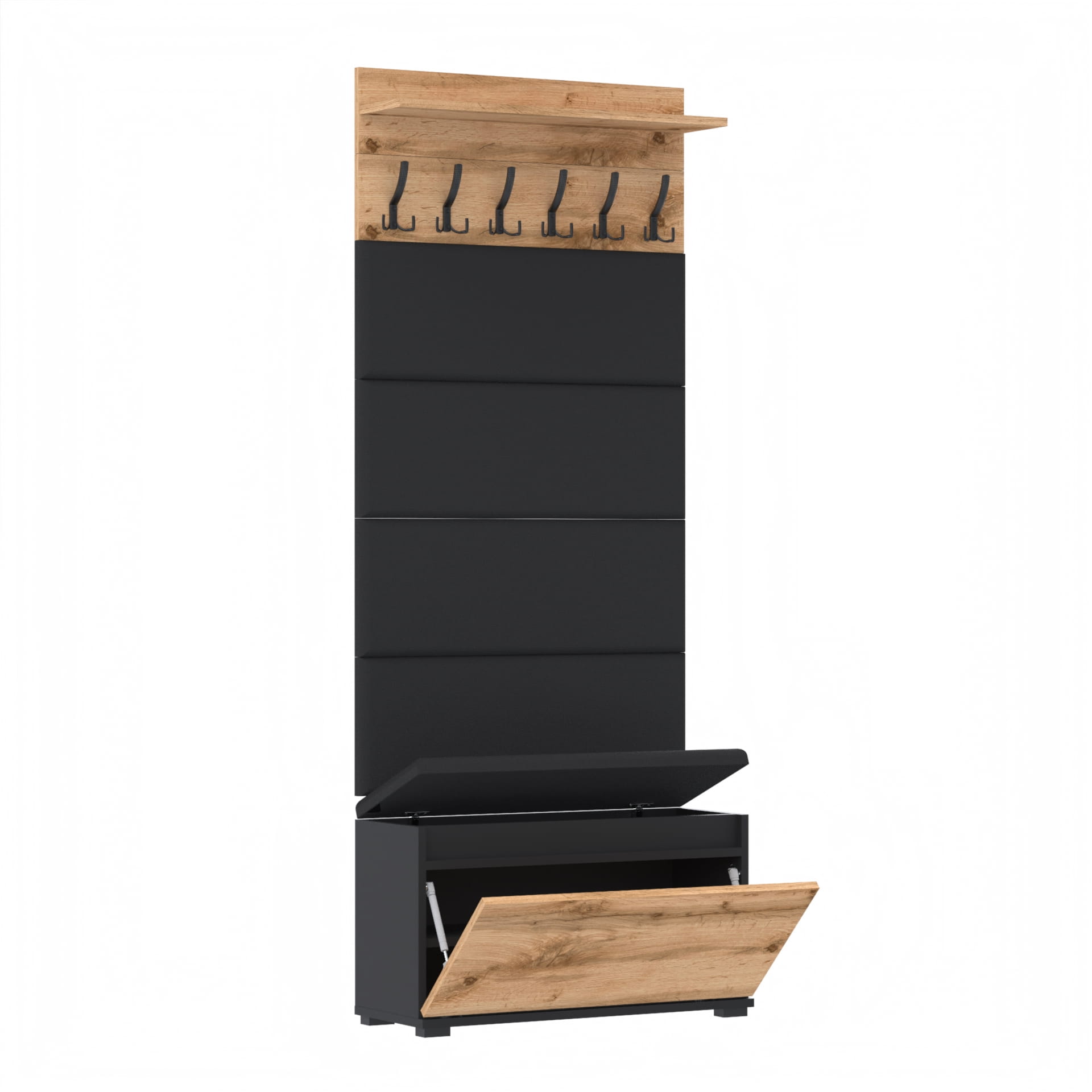 Garderoba 80x30D1N1-4PAN szafka na buty wieszak panele CZARNY WOTAN