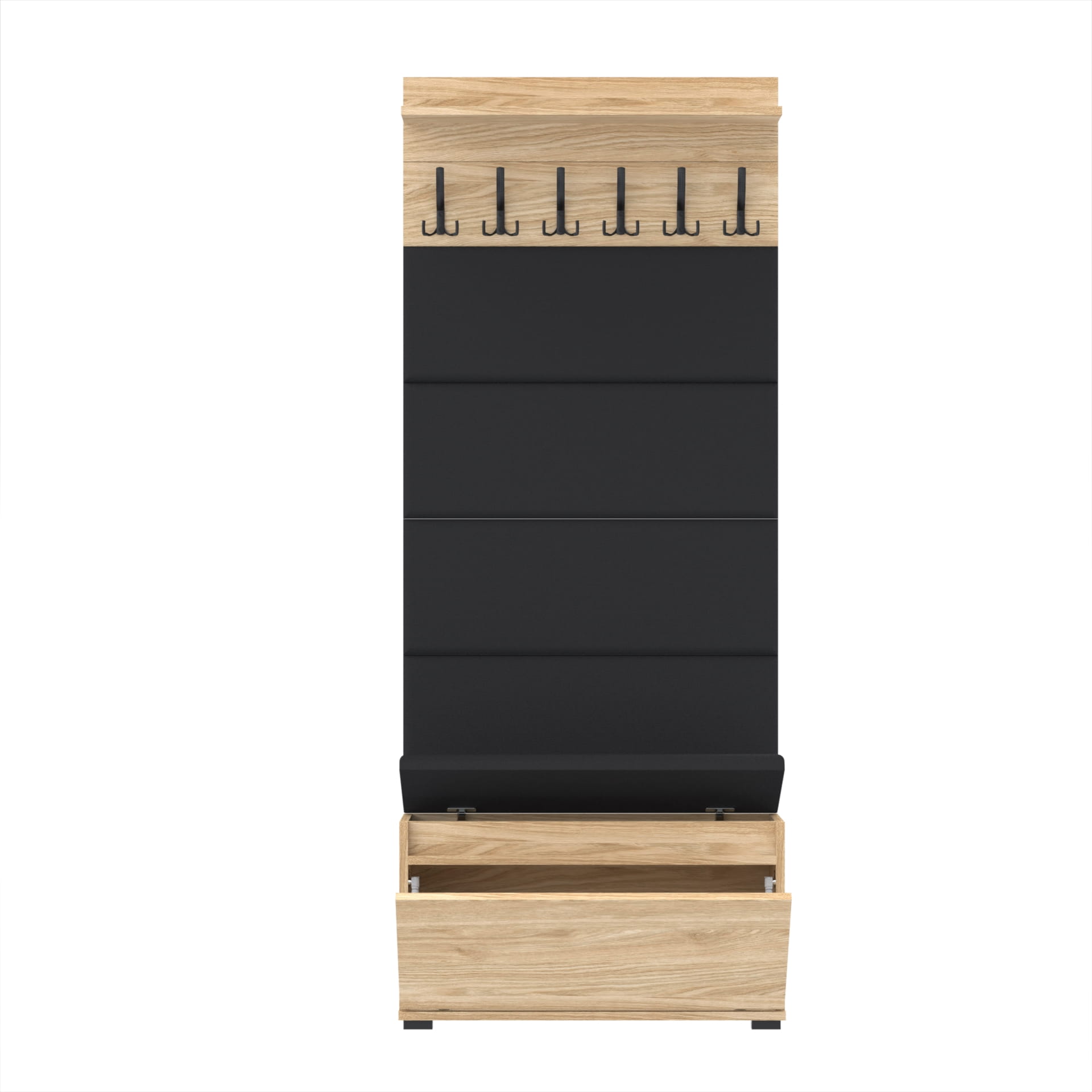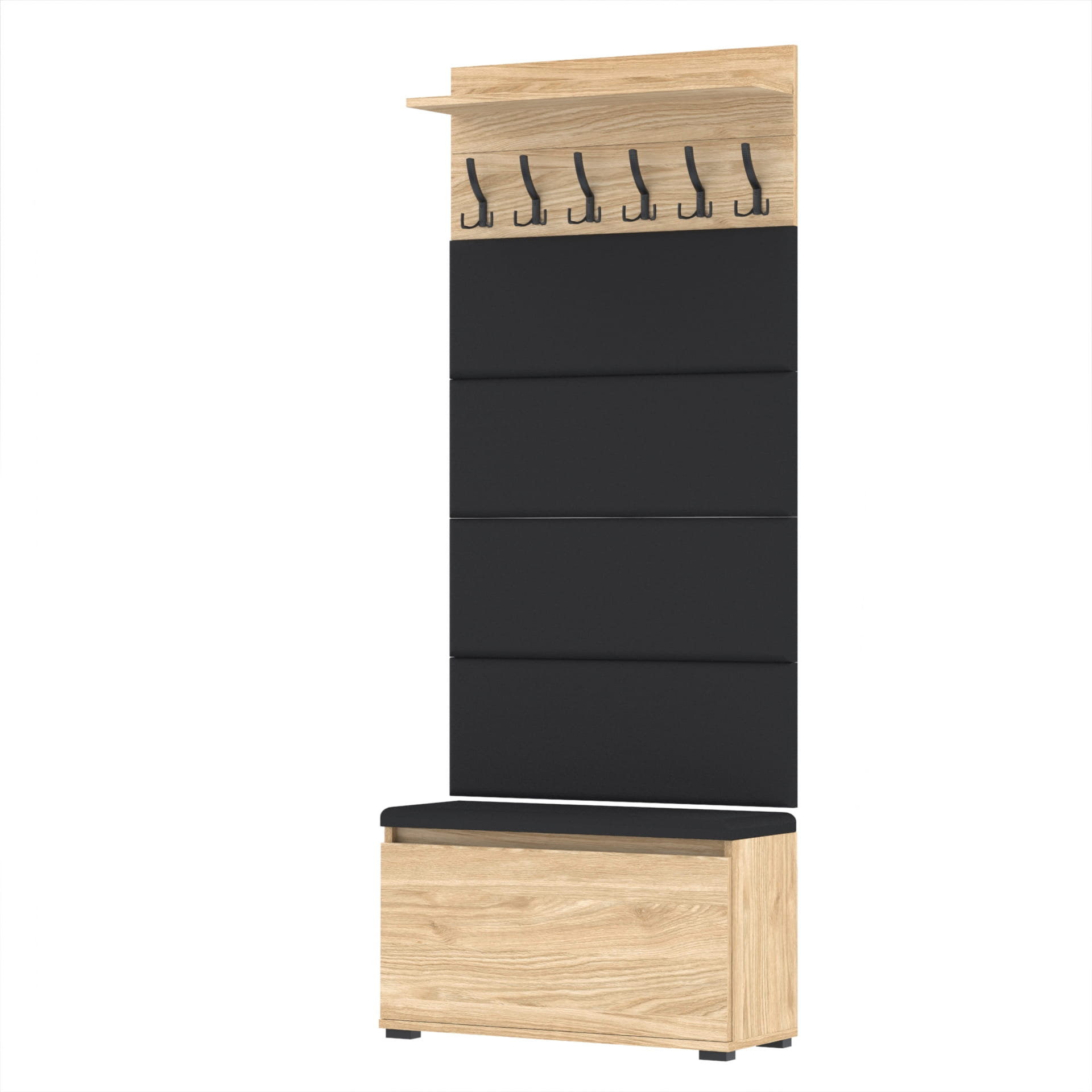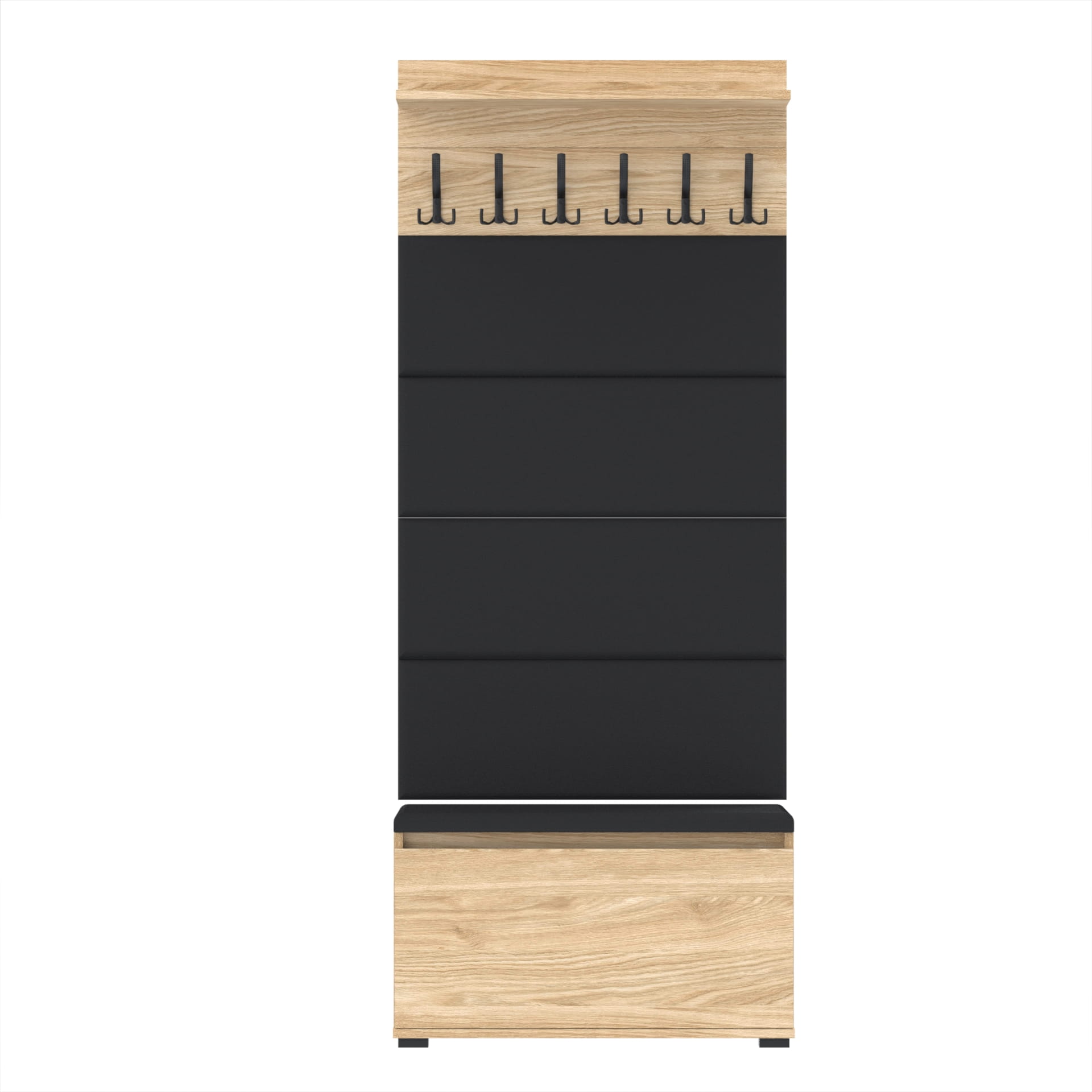 Materiał: Płyta meblowa 18mm, obrzeże ABS, okucia metalowe, stopki tworzywo sztuczne, haki wieszaka metalowe.