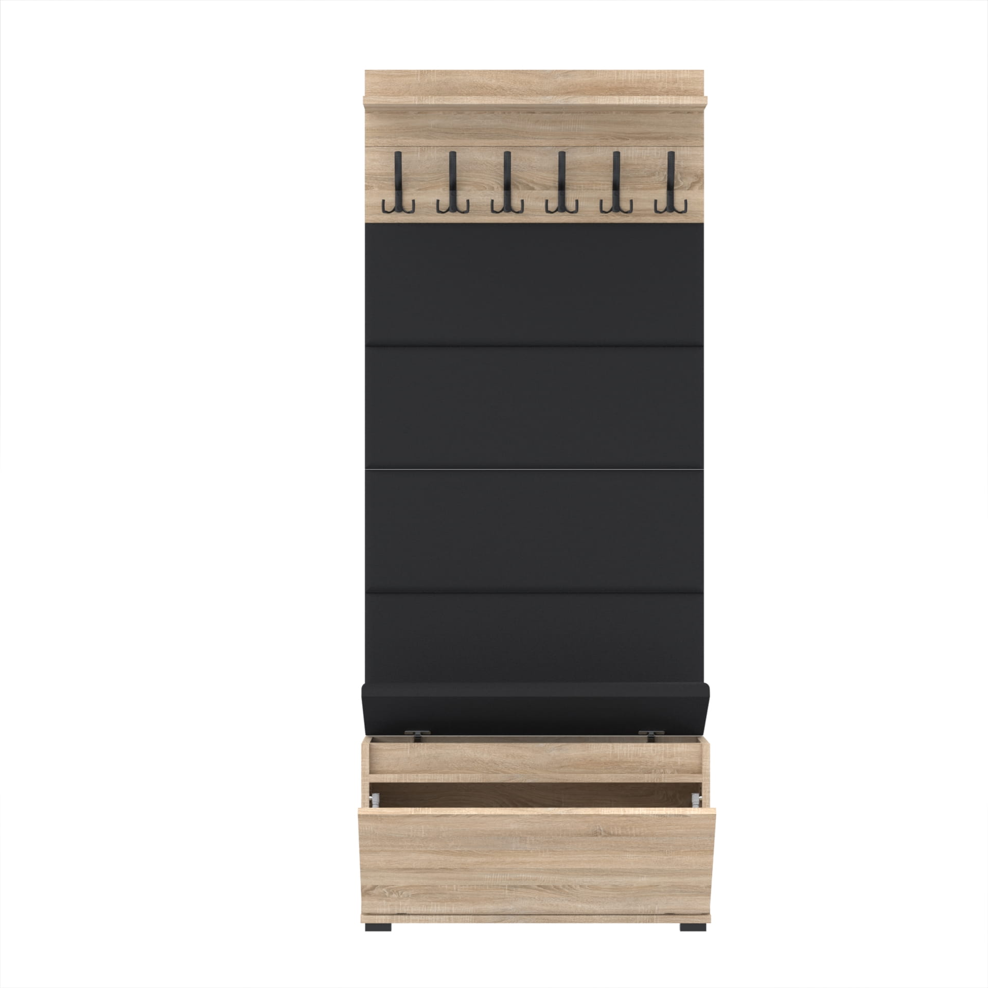 Materiał: Płyta meblowa 18mm, obrzeże ABS, okucia metalowe, stopki tworzywo sztuczne, haki wieszaka metalowe.