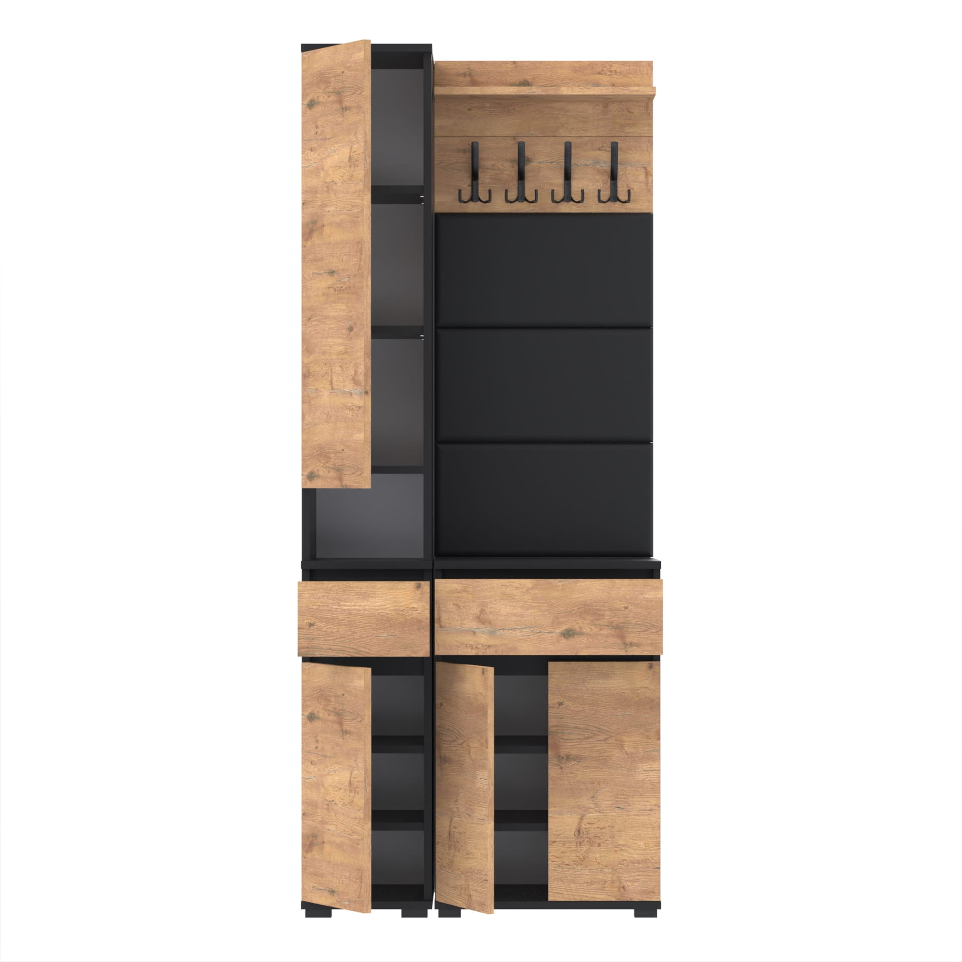 Ciesz się wygodą i stylem, który wprowadzi do Twojego domu ten kompleksowy zestaw mebli. Idealne do przechowywania ubrań, obuwia i innych przedmiotów codziennego użytku, te meble dodadzą elegancji i funkcjonalności każdemu przedpokoju.