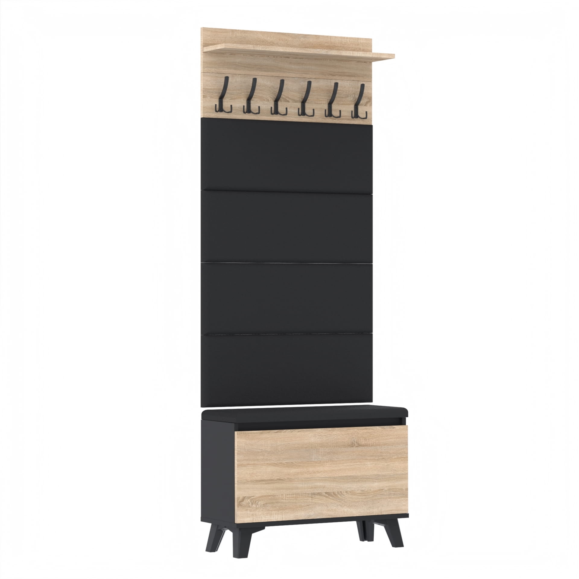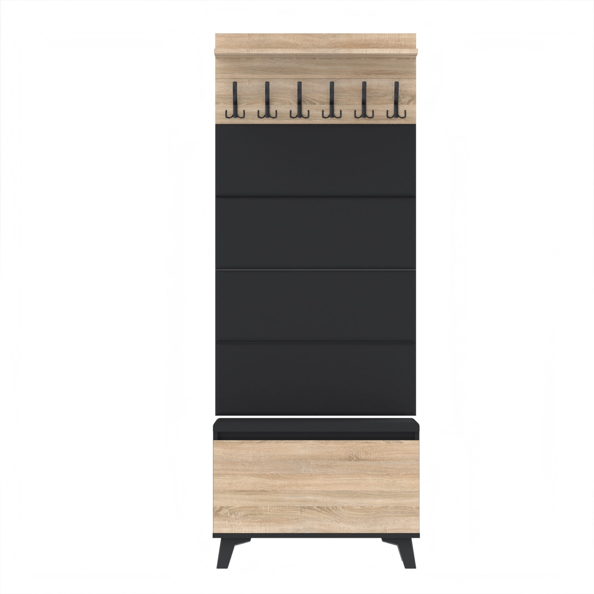 Garderoba 80x30D1N2 4PAN szafka na buty wieszak panele CZARNY SONOMA